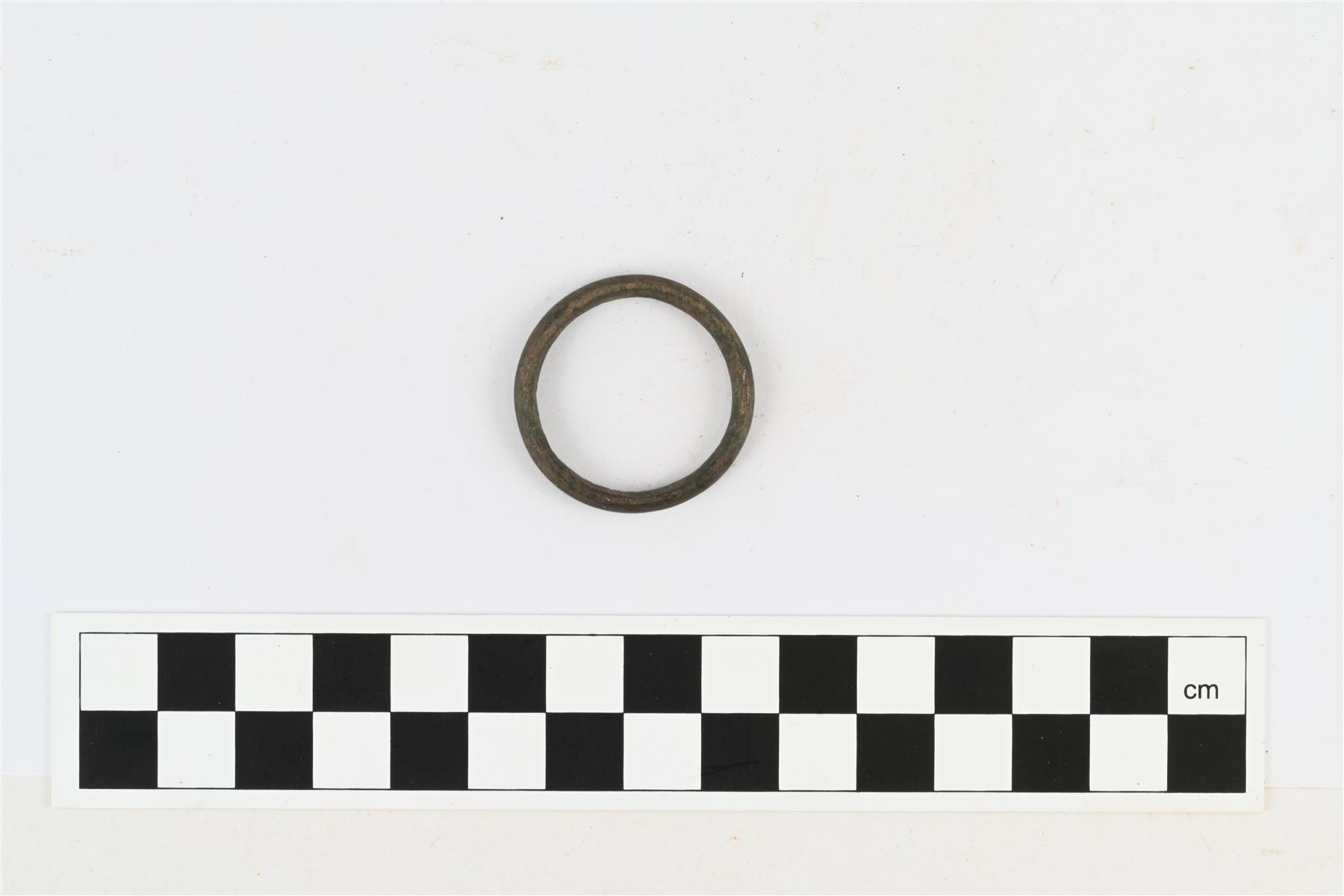 | Kupariseoksinen rengas, jossa ei ole hihnanjakajakäyttöön viittaavia kulumajälkiä. Kehän poikkileikkauksen muoto on lähinnä teräväpäinen soikio. Lapin maakuntamuseon arvion mukaan esine on shamaanirummun arparengas. | |