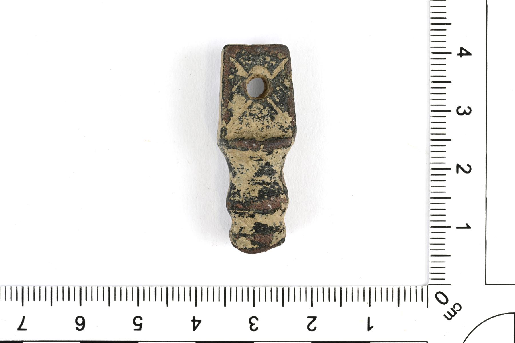 | Mahdollinen tynnyrinhanan osa. Yläosa on levymäinen ja siinä on pyöreä reikä. Alaosa on poikkileikkaukseltaan pyöreä varras. | |