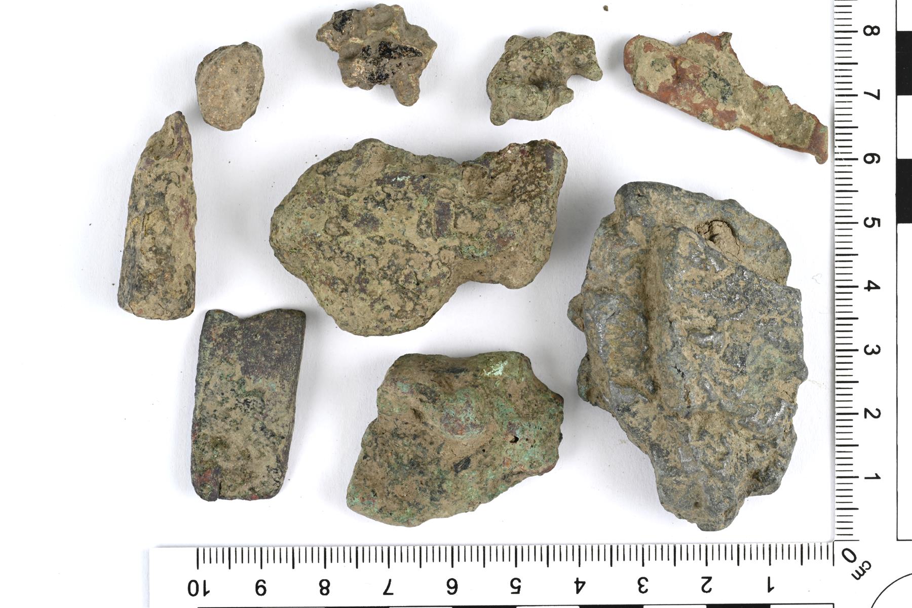 | Sulaneen kupariseoksen paloja. Jussi Moisio 5.12.2023 KM45978:3_1_sulanut aines |