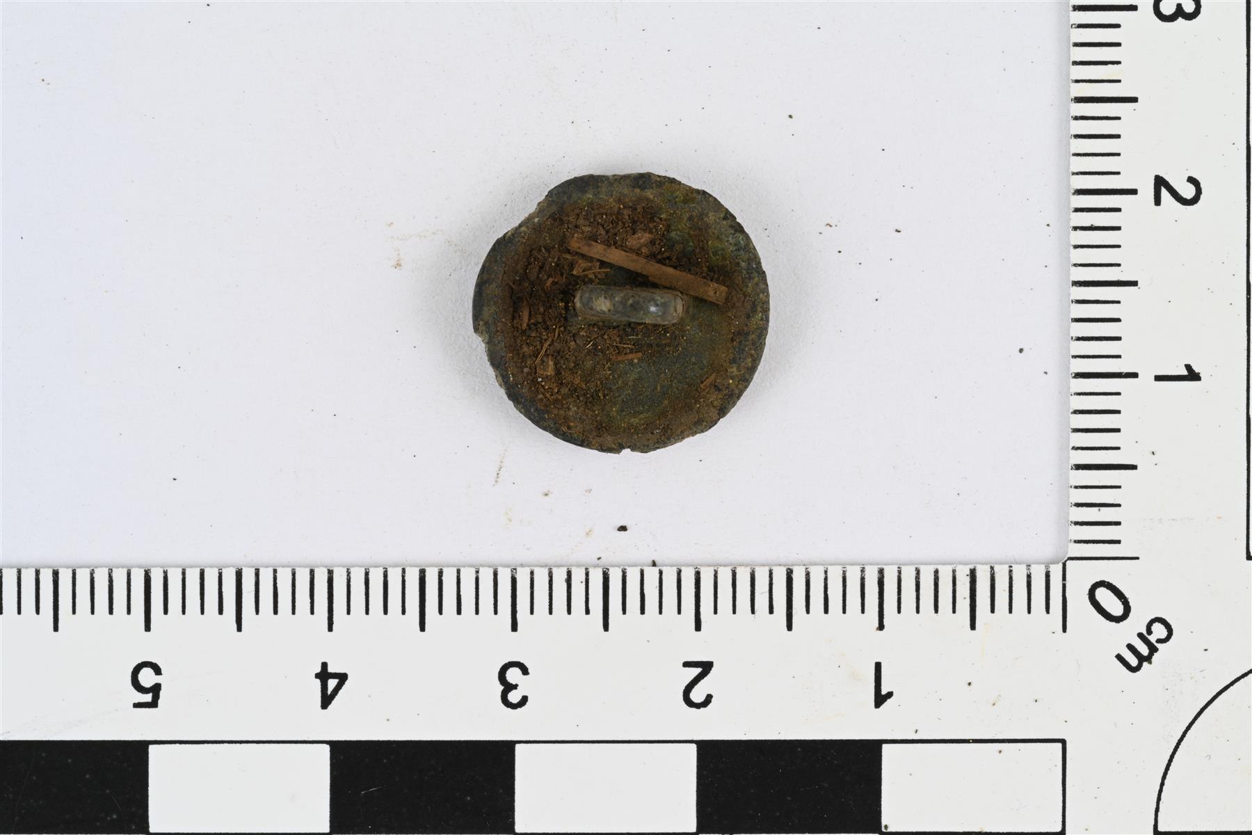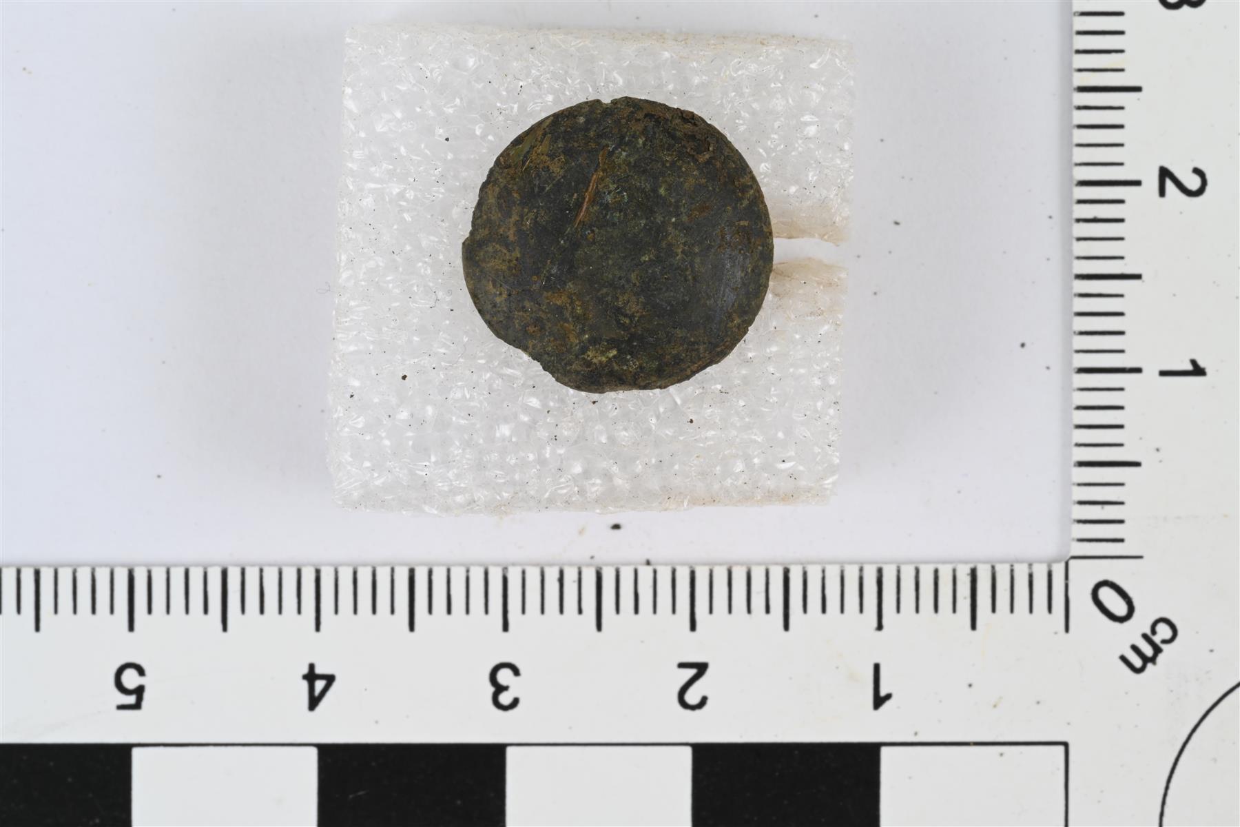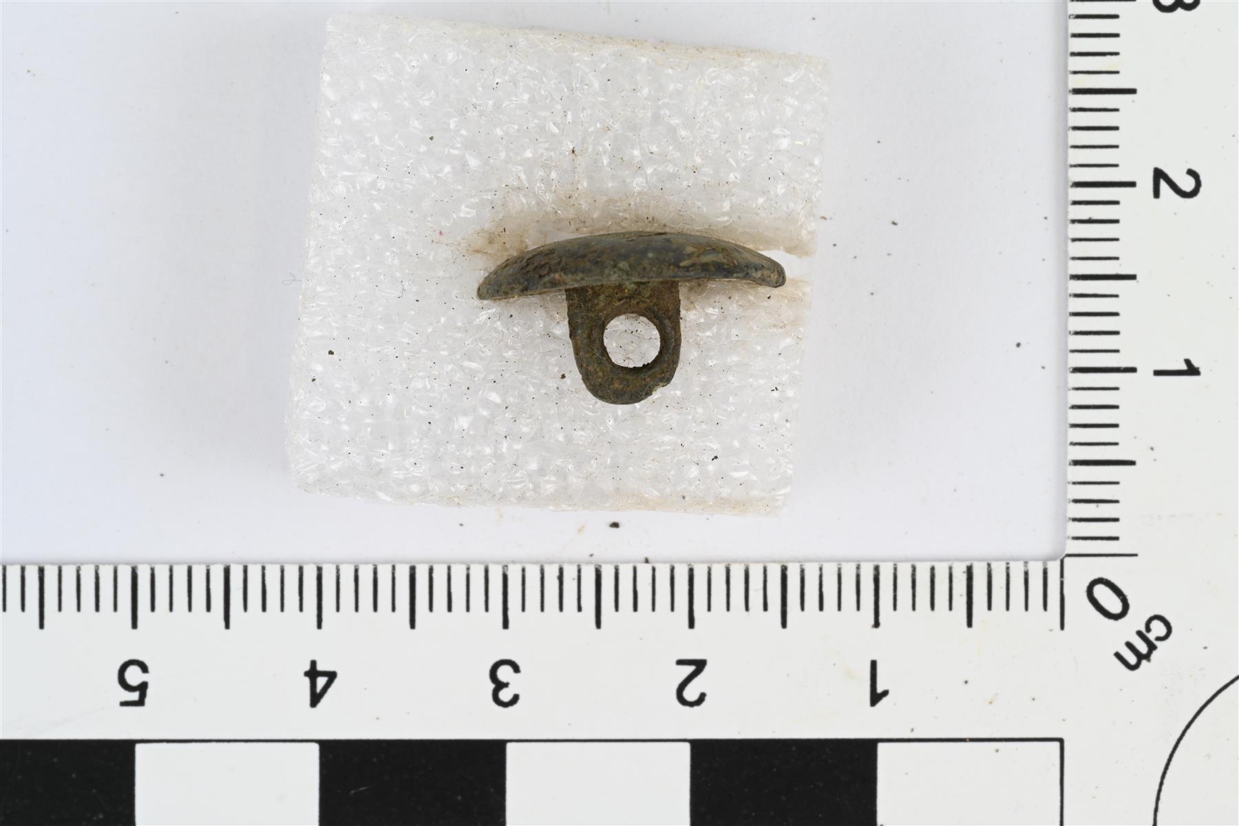 | Levymäinen, etupuolelta kupera ja taustapuolelta kovera nappi. Taustapuolella kanta. Sileä ja koristelematon. | |