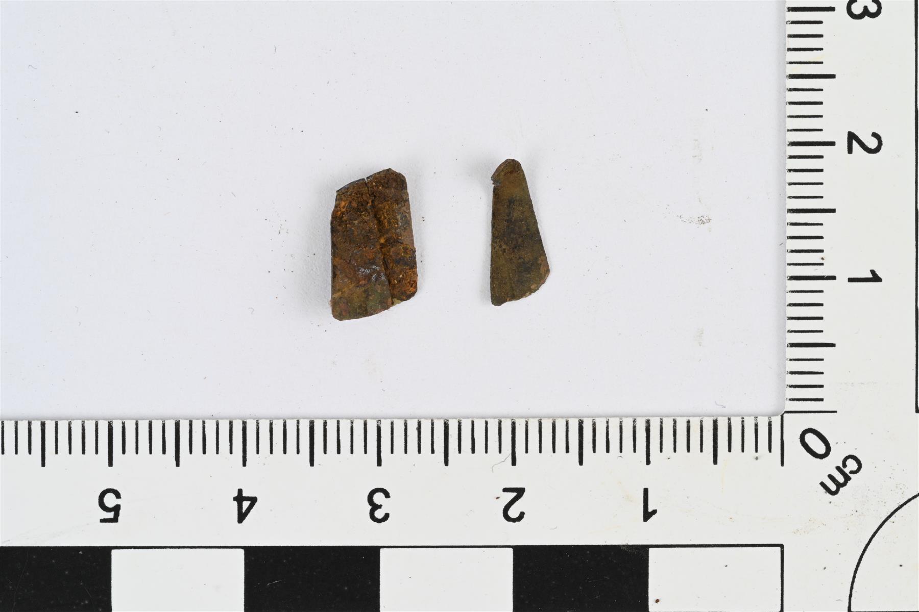 | Ohuita metalliliuskoja piipunhatun alareunasta. Toisessa katkelmassa kaksi vierekkäistä liuskaa. | |