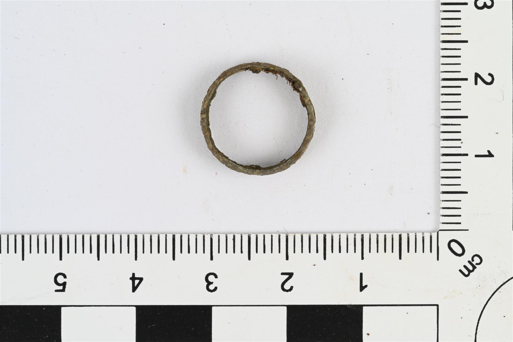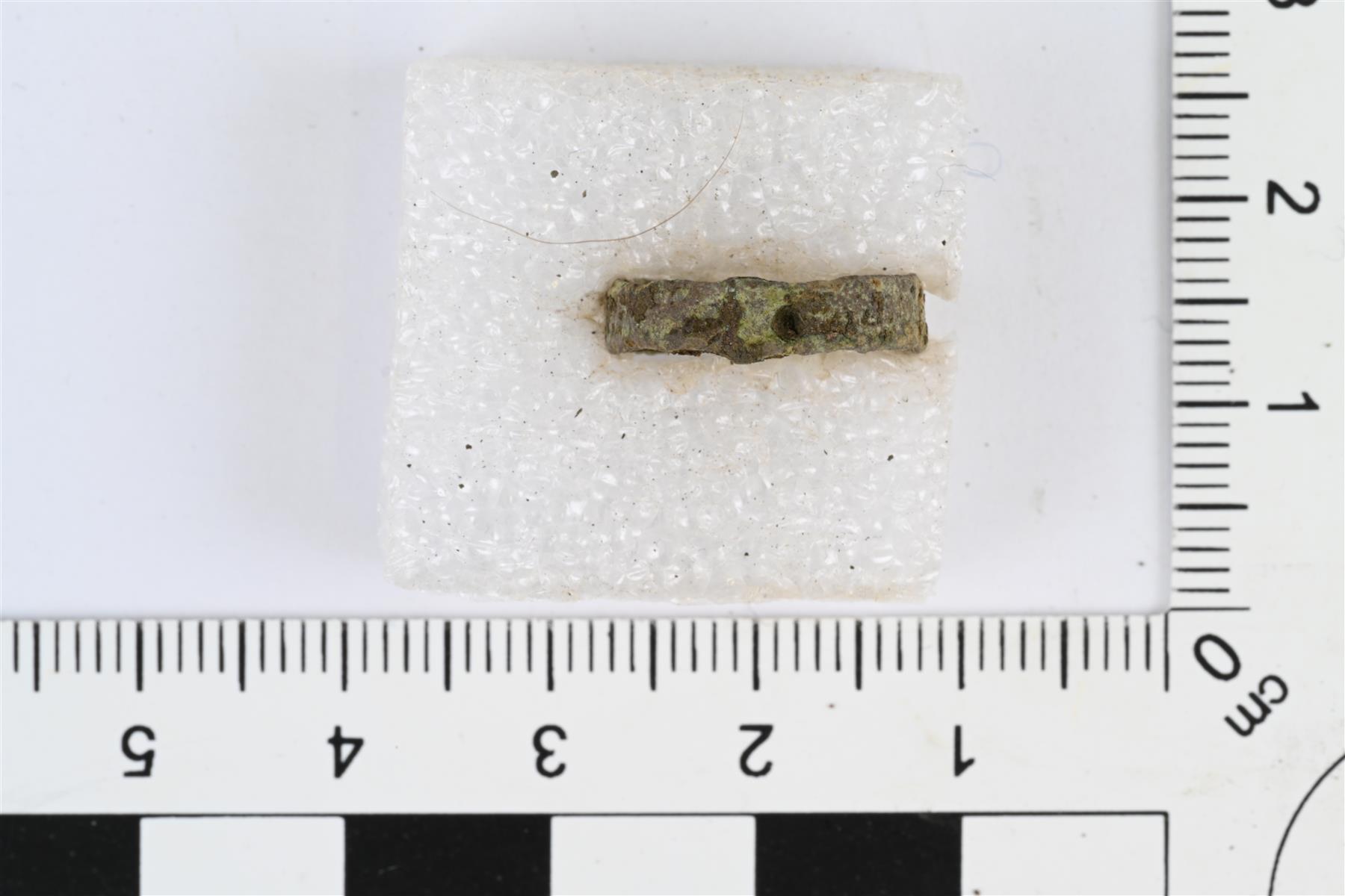 | Pieni putkimainen kupariseosrengas. Kehässä kolme pientä reikää. | |