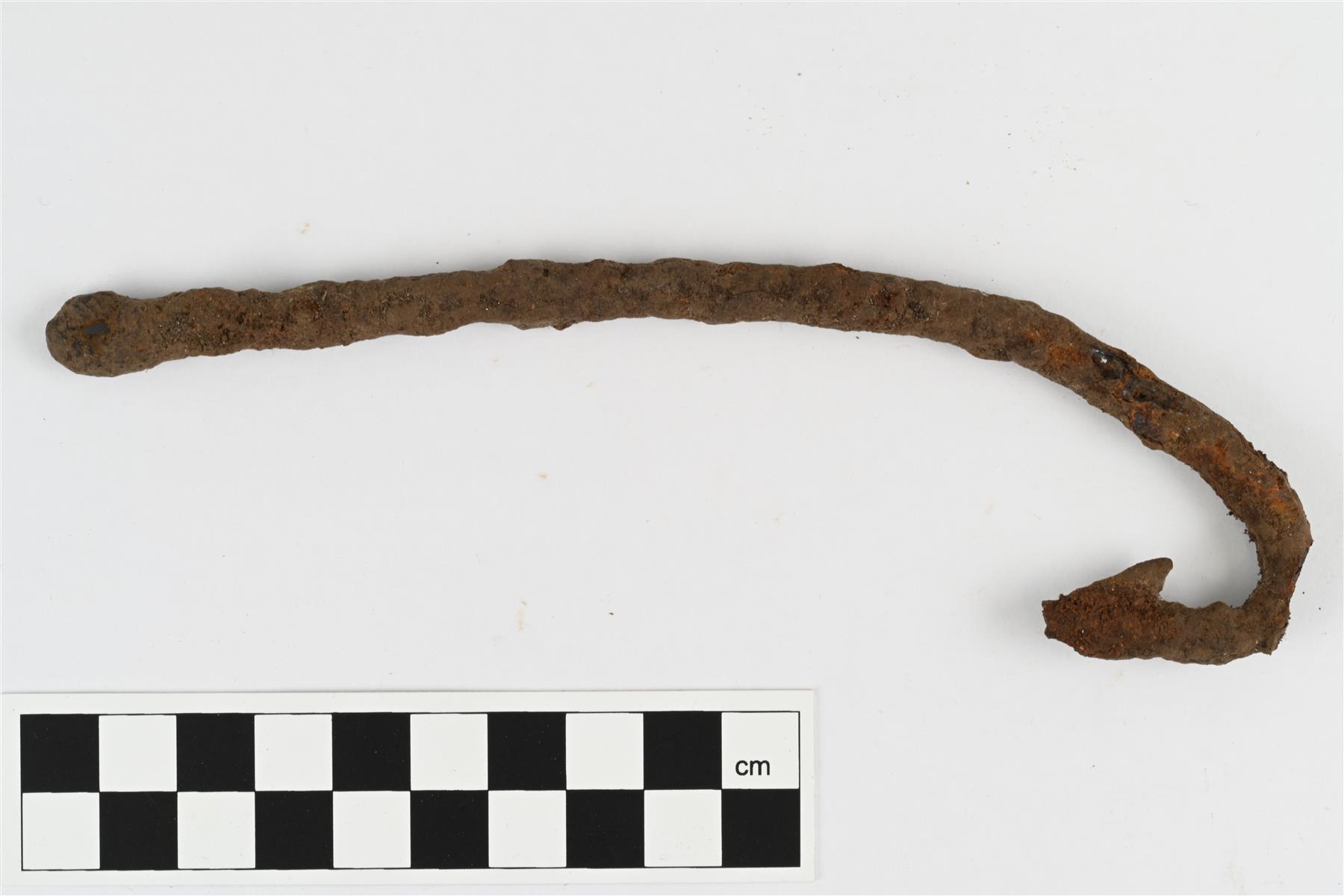 | Suurehko koukku. Mahdollisesti suuri kalastuskoukku tai lihakoukku. Koukun päässä väkänen. Varren päässä pieni reikä. | |
