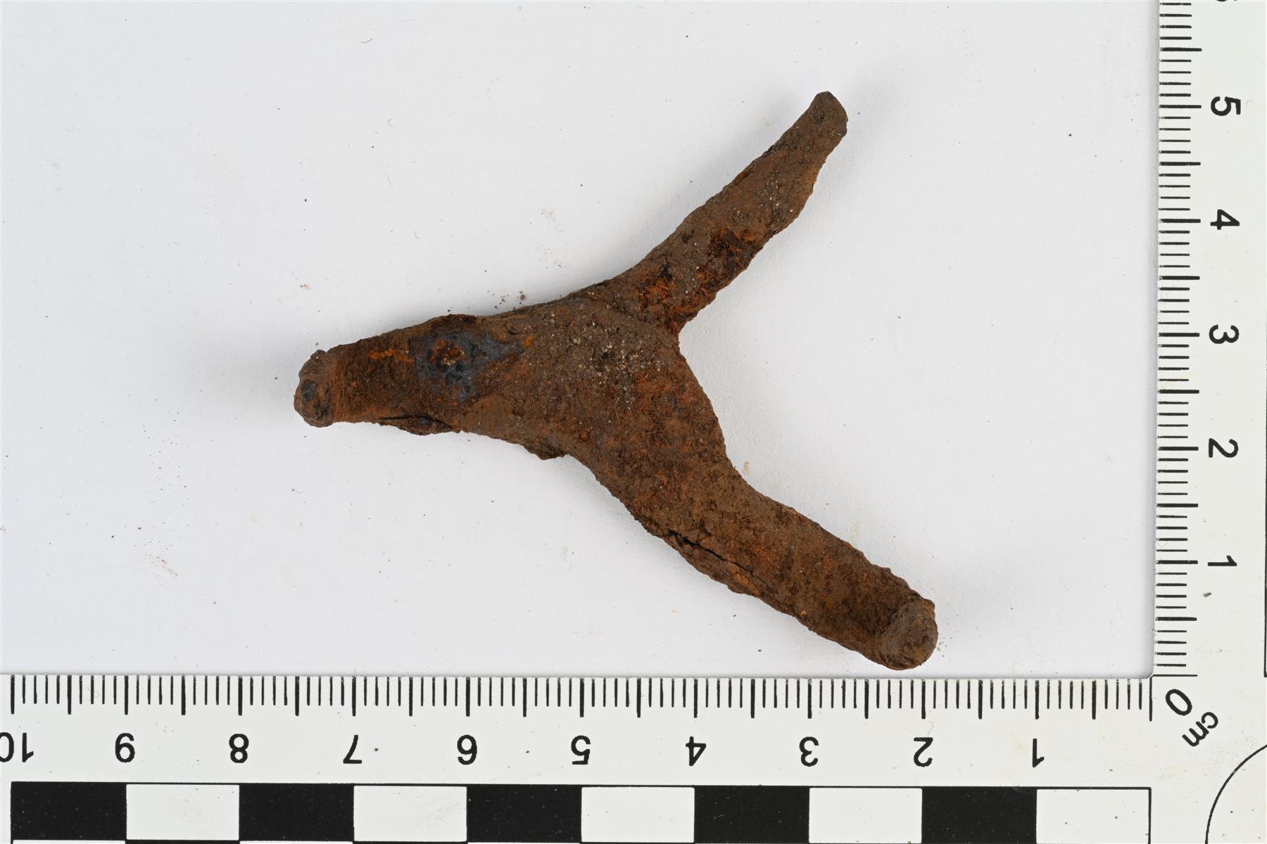 | Kolmihaarainen jääkenkä. Yhden haaran pää katkennut. Päät teräväkärkiset, taipuvat 90 asteen kulmaan piikeiksi. Vrt. Luoto 1984, s. 91, 214 JEA. | |
