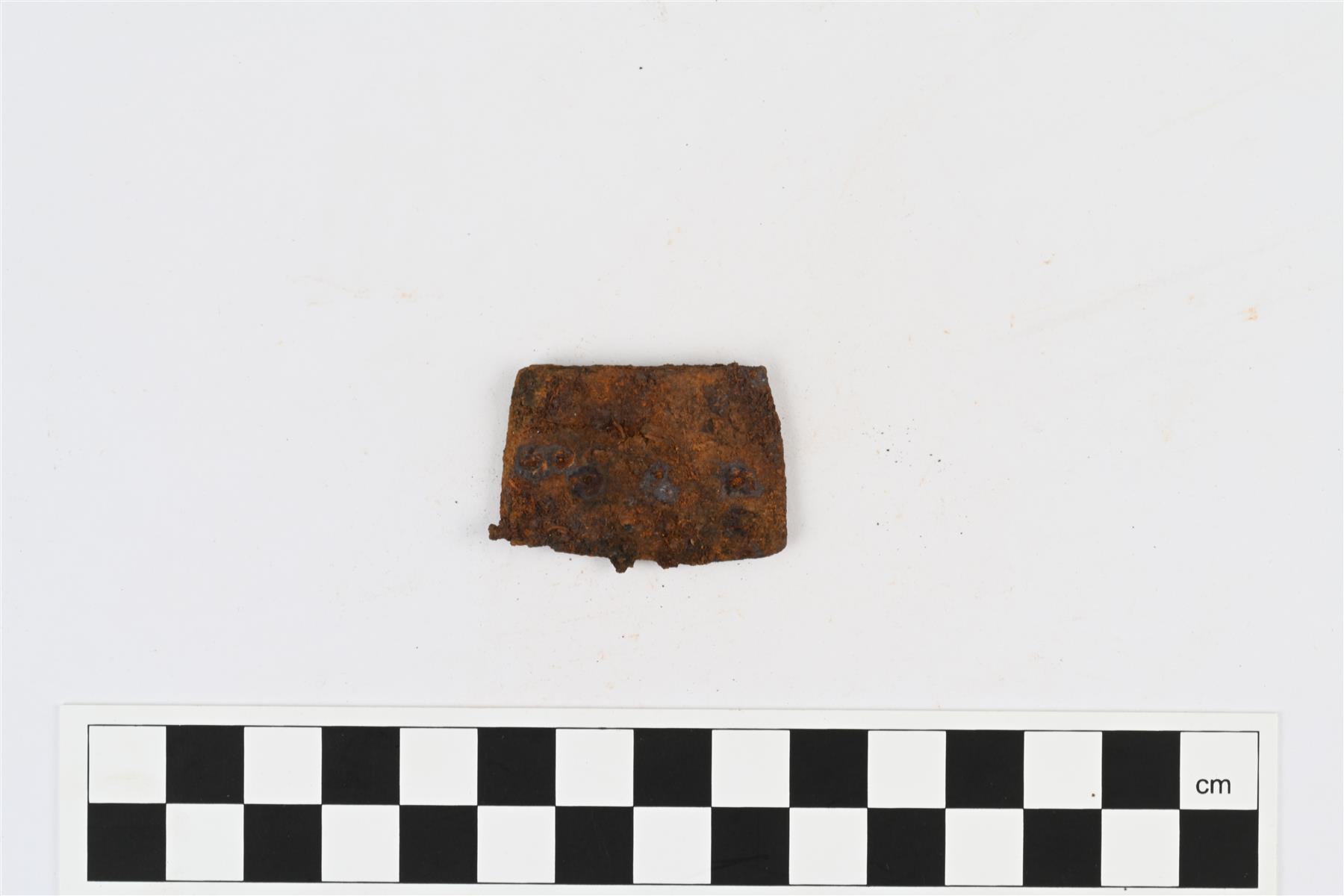 | Kuperateräinen teräkatkelma. ehkä talttamaisen esineen kärjestä. | |