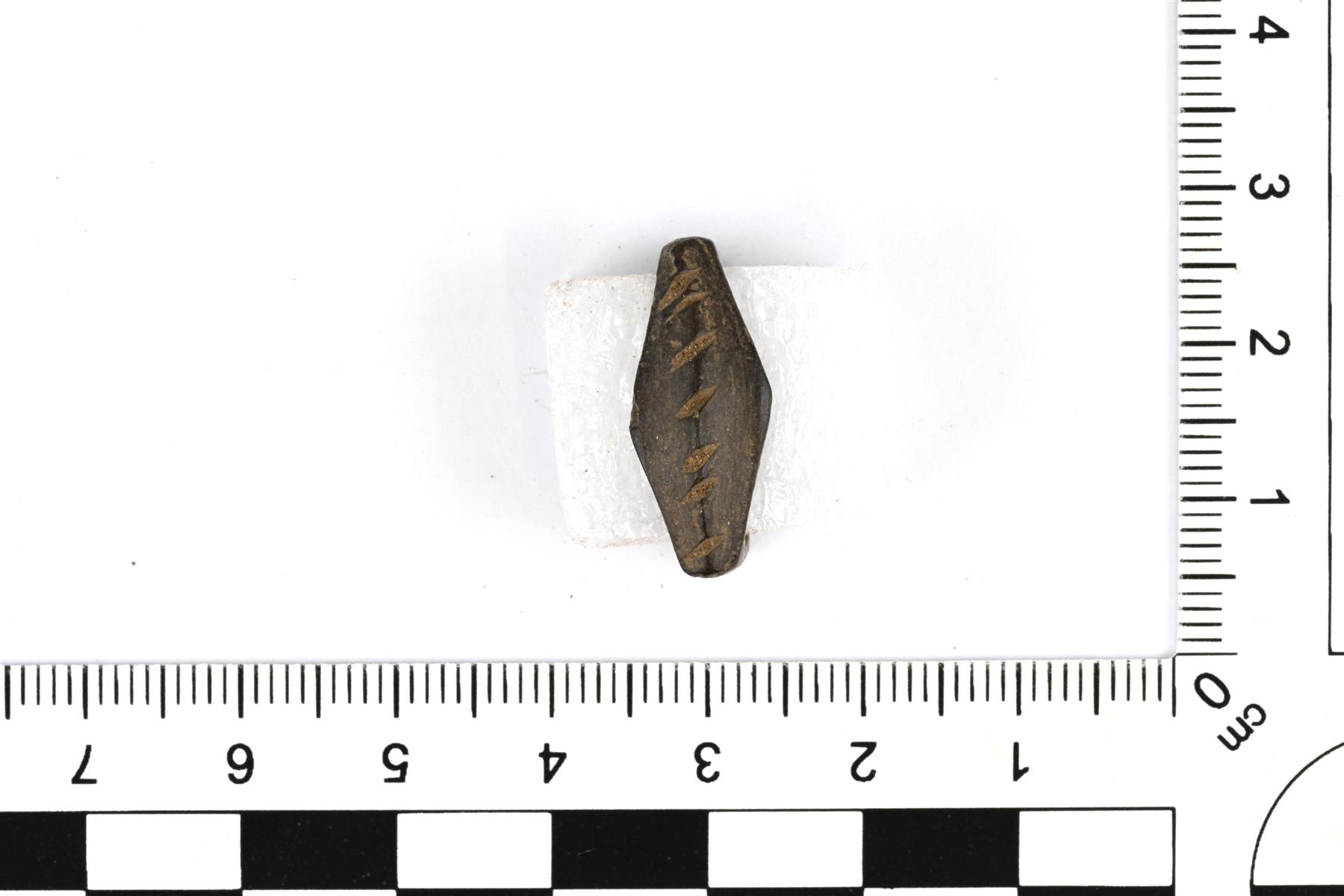 | Kapea vyönhela. Etuosa on muodoltaan kapea kuusikulmio. Koristeluna vinoviivoja. | |