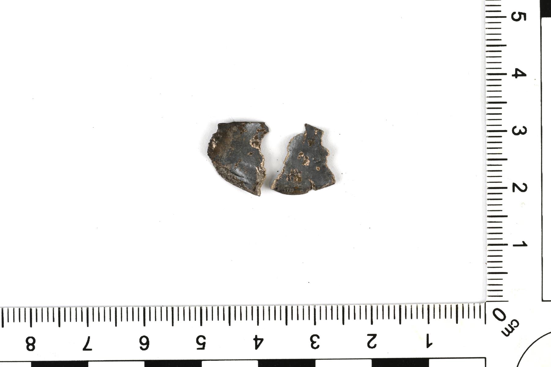 | Kaksi pientä katkelmaa dirhemistä. Katkelmien murtumapinnat sopivat yhteen. | |