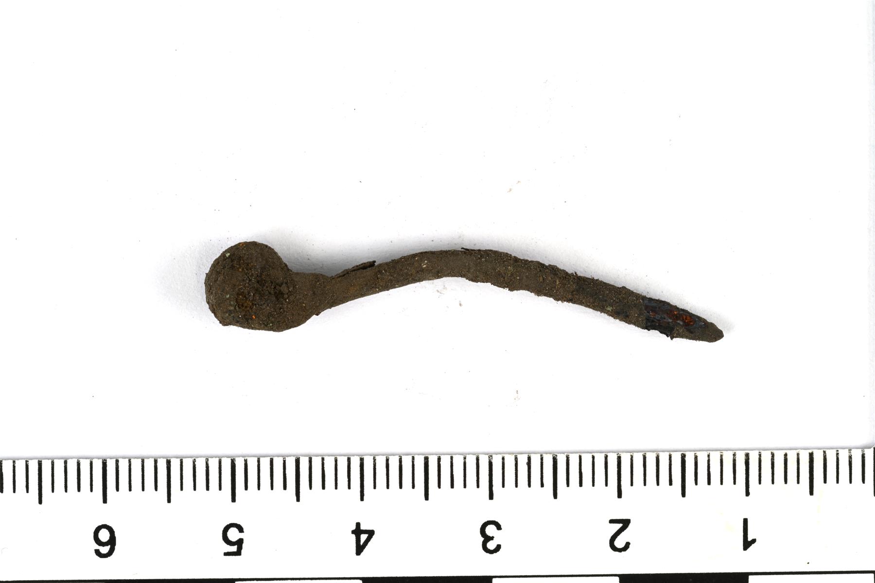 | Mahdollinen kupurasoljen : 1 neulan katkelma. Yksi pää on kierretty lenkille ja neulan keskiosa on hieman taipunut. | |