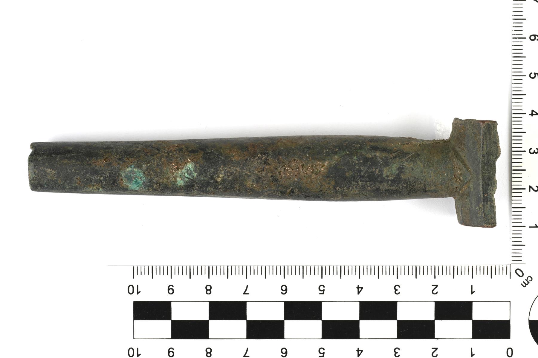 | Tynnyrinhanan putken katkelma. Ehjä pääty on ollut kiinni tynnyrissä. Rikkoutuneessä päässä on poikittaisen putken jäänne, jossa on alun perin ollut hanan väännin. | |