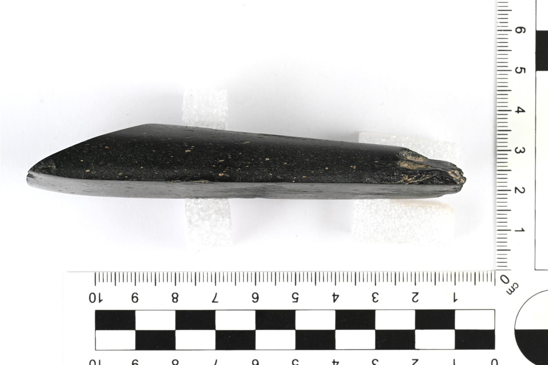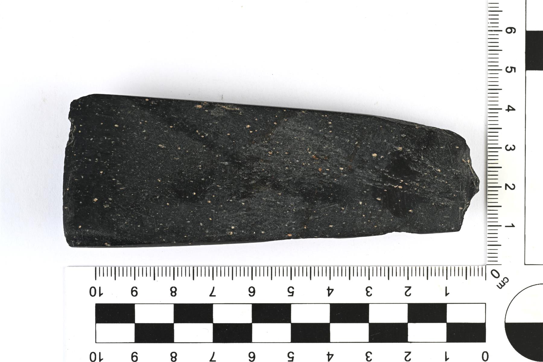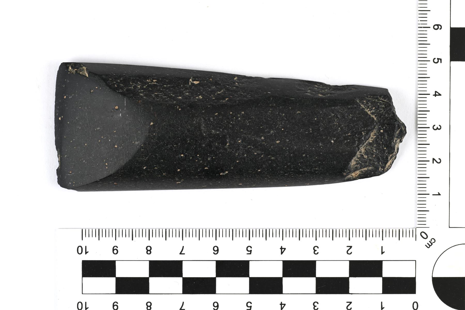 | Hyväkuntoisena säilynyt pohjalainen tasataltta. Kapenee kantaa kohti ja esineen poikkileikkaus on D:n mallinen. Teränsuusta on lohjennut pieni pala. Kannassa, yläpinnassa ja toisella sivulla on jäänteitä pilstomisessa syntyneistä valmistusjäljistä. Muilta osin hiottu sileäksi. Teränsuu on suora. | |