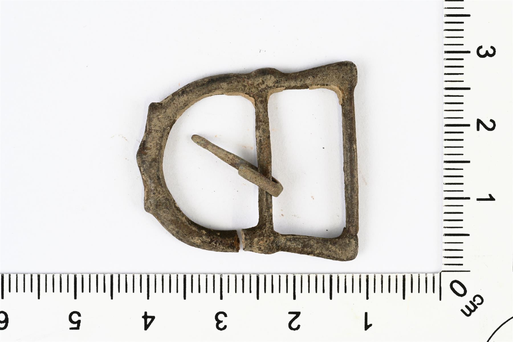 | Epäsymmetrinen double loop -solki. Kehä on murtunut. Etuosa on D:n muotoinen ja takaosa suorakaiteen. Keskellä olevassa poikkivarressa on pieni neula. Kehän etuosassa on koristeluna kolme nystyrää. | |