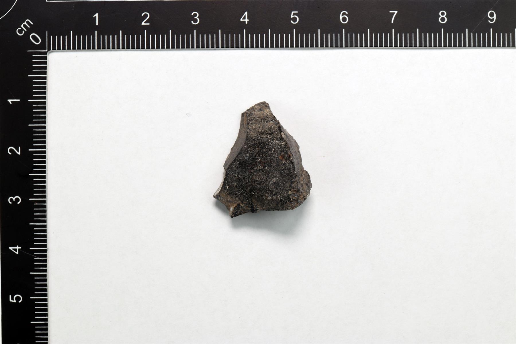 | Hiotun kiviesineen katkelma. Mustaa liusketta. | |
