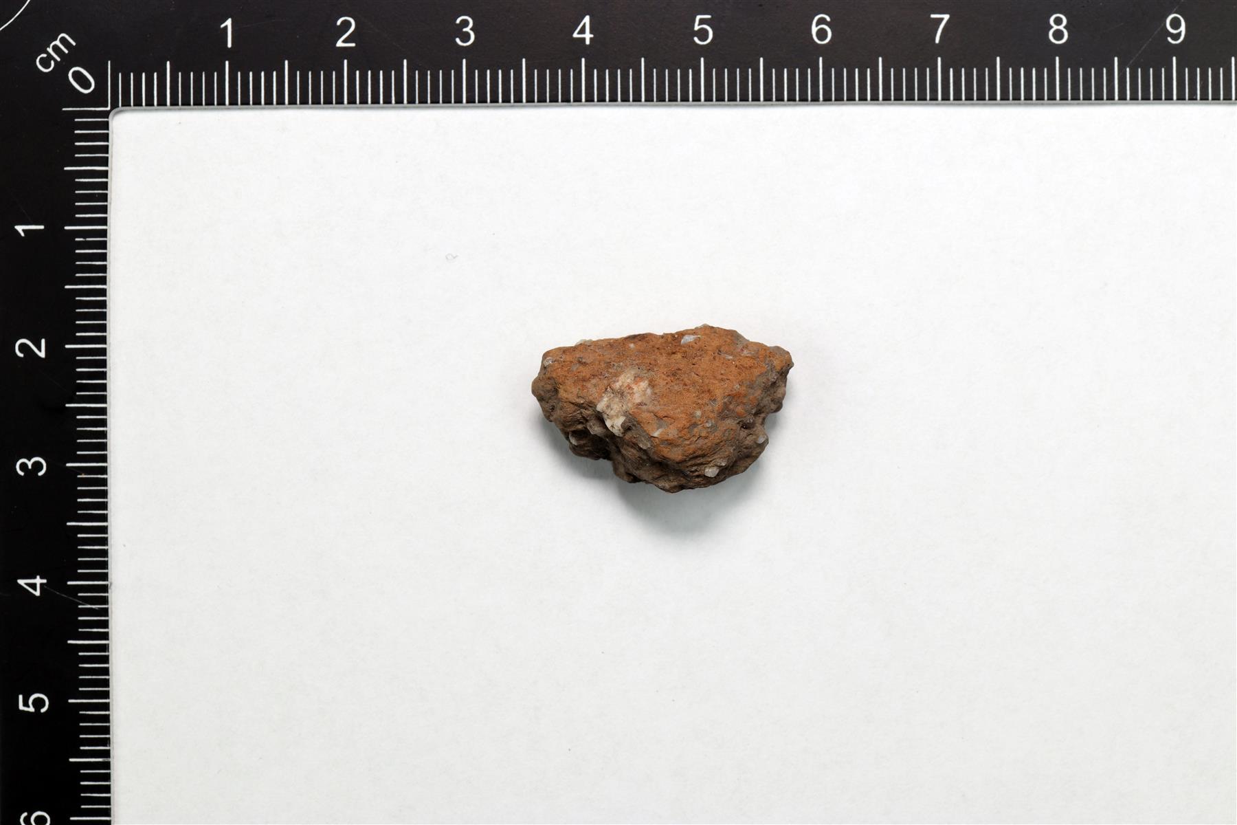 | Lohjennut saviastian pala. Saviaines on karkea ja kivimurskasekoitteinen. Seinämän pinta on ruskea ja ydin harmaanruskea. | |