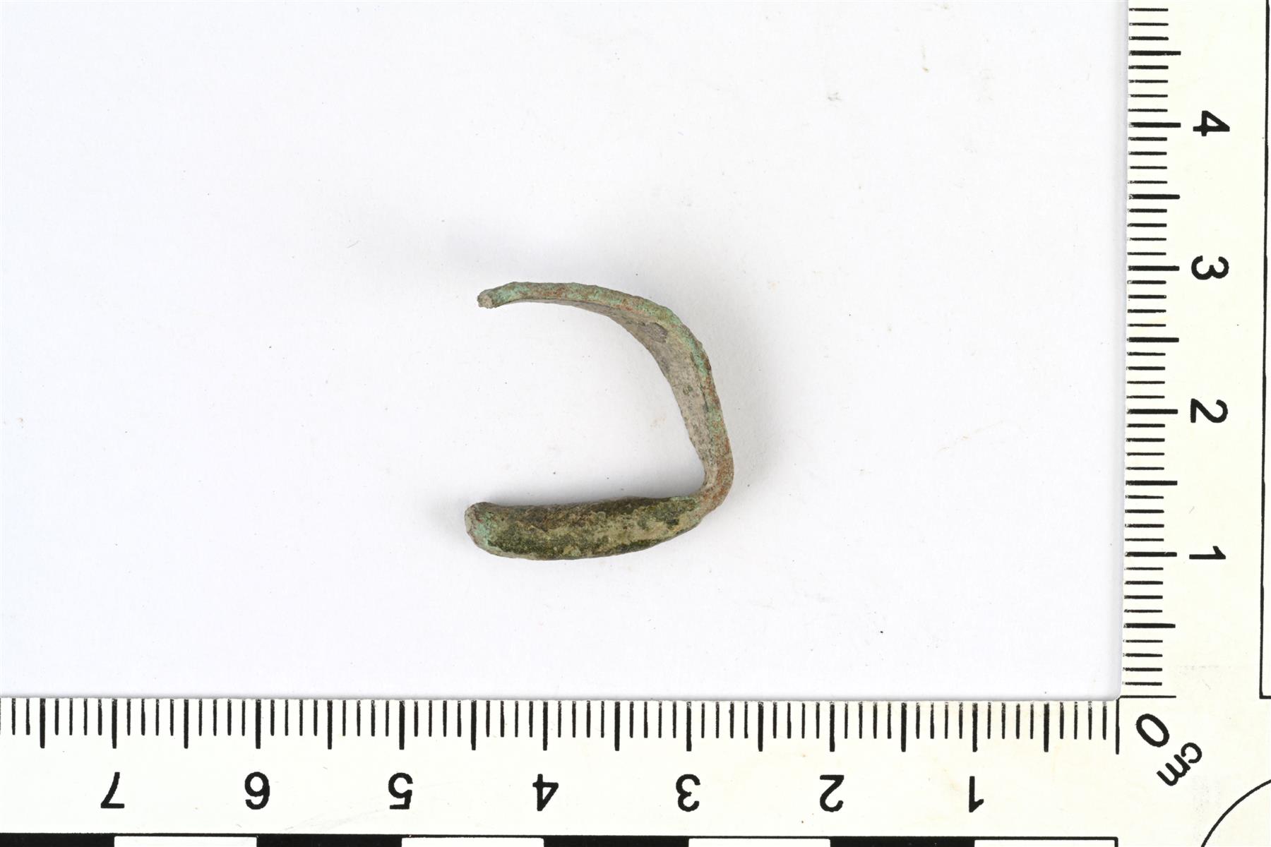 | Hevosenkenkäsoljen neulan katkelma. Säilyneenä soljen kehän ympärille kierrettyä osaa sekä neulan tyvi. | |