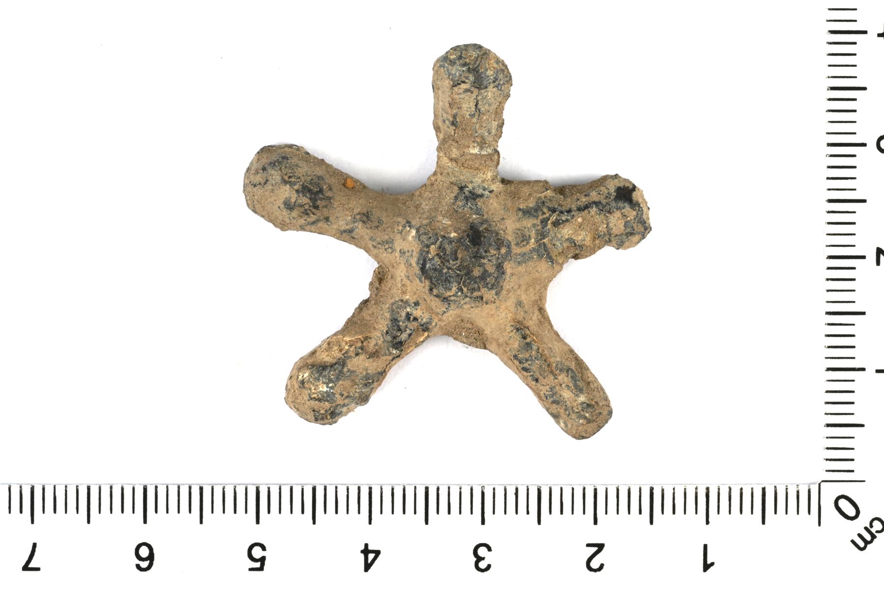 | Viisisakarainen kupariseosesineen katkelma. Mahdollisesti valujätettä. | |