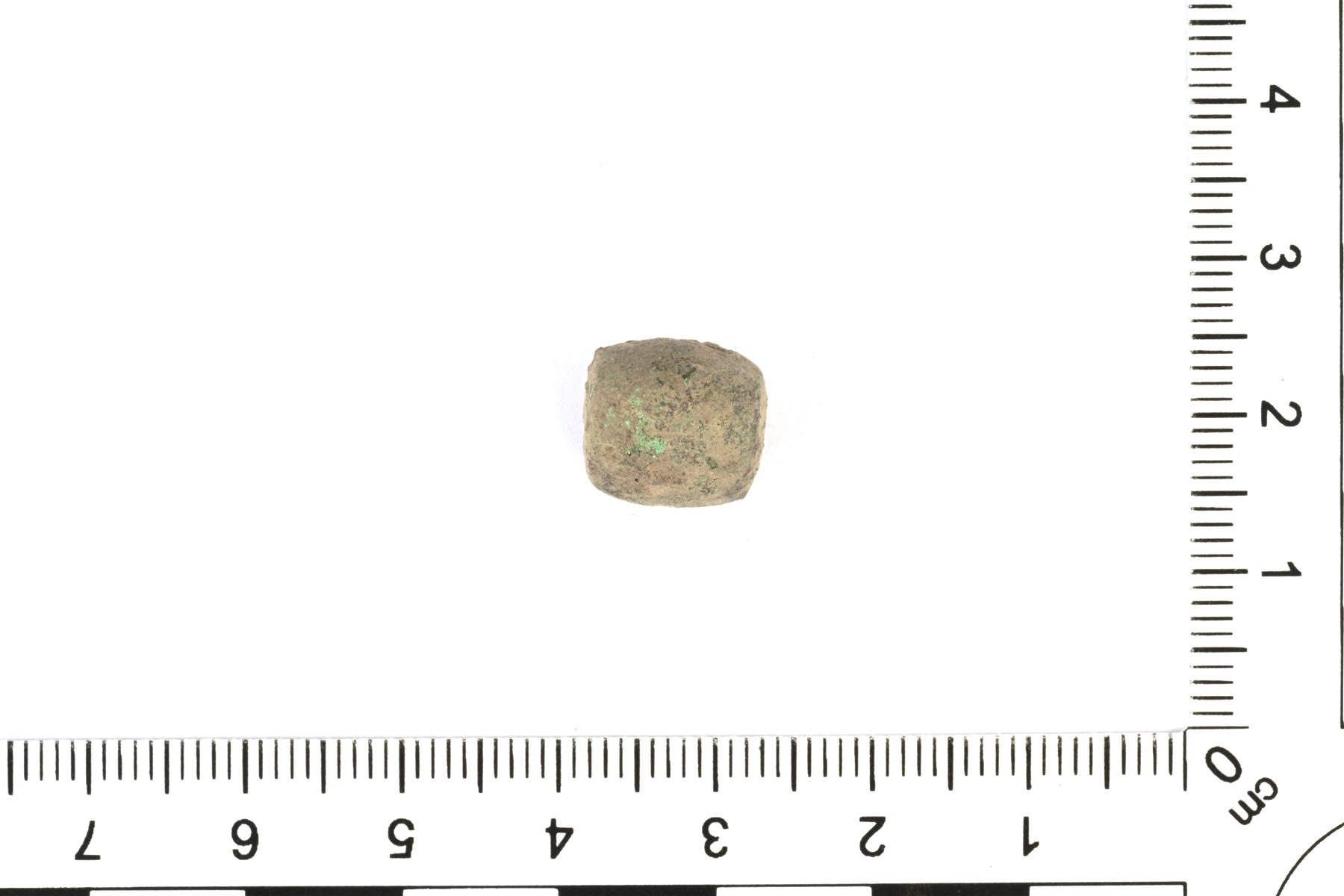| Tynnyrimäinen kupariseoshelmi. Reikä on hieman sivussa. | |