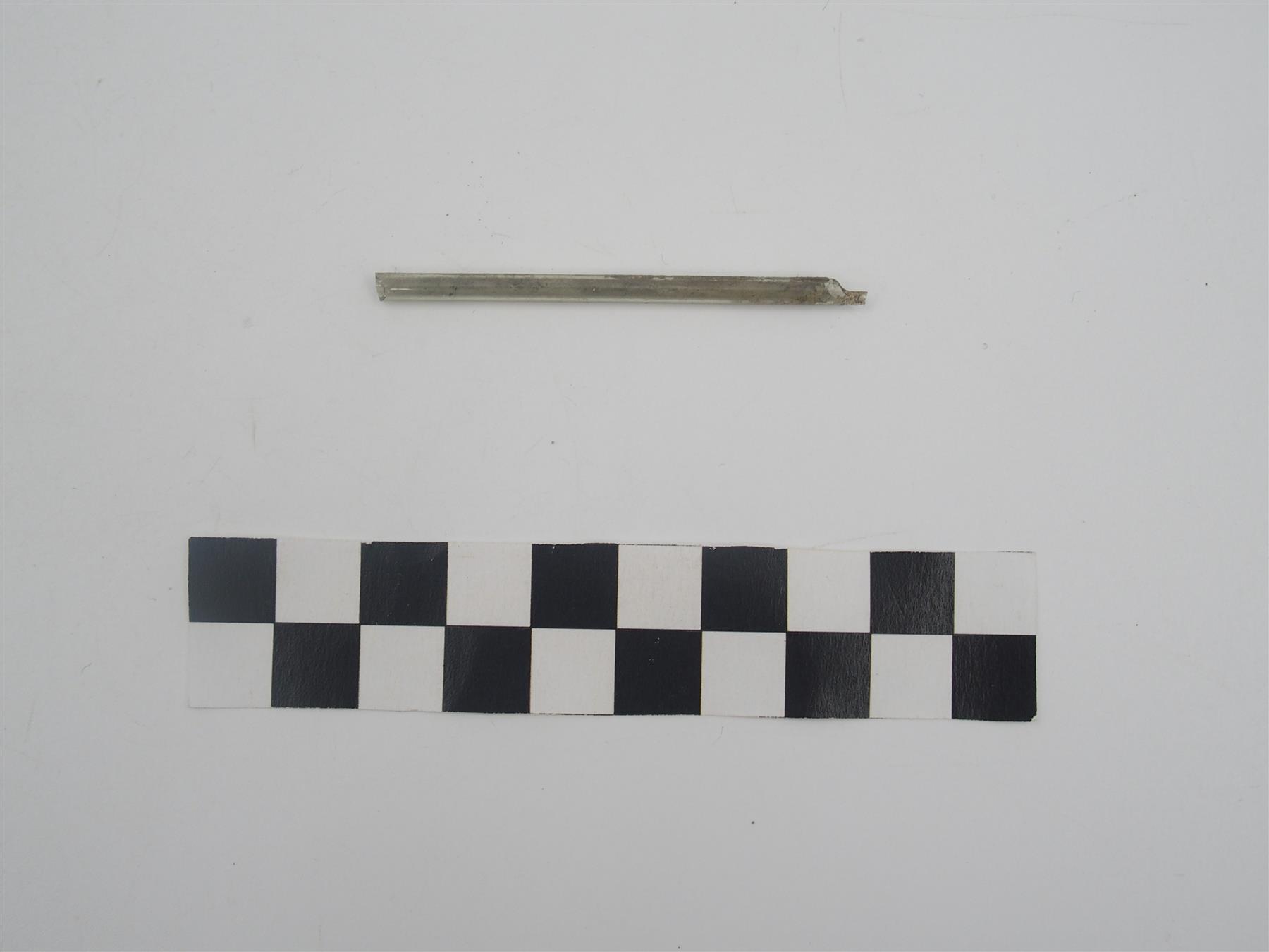 | Hyvin ohut lasiputki, jota on todennäköisesti käytetty lasiesineen koristeluun. | |