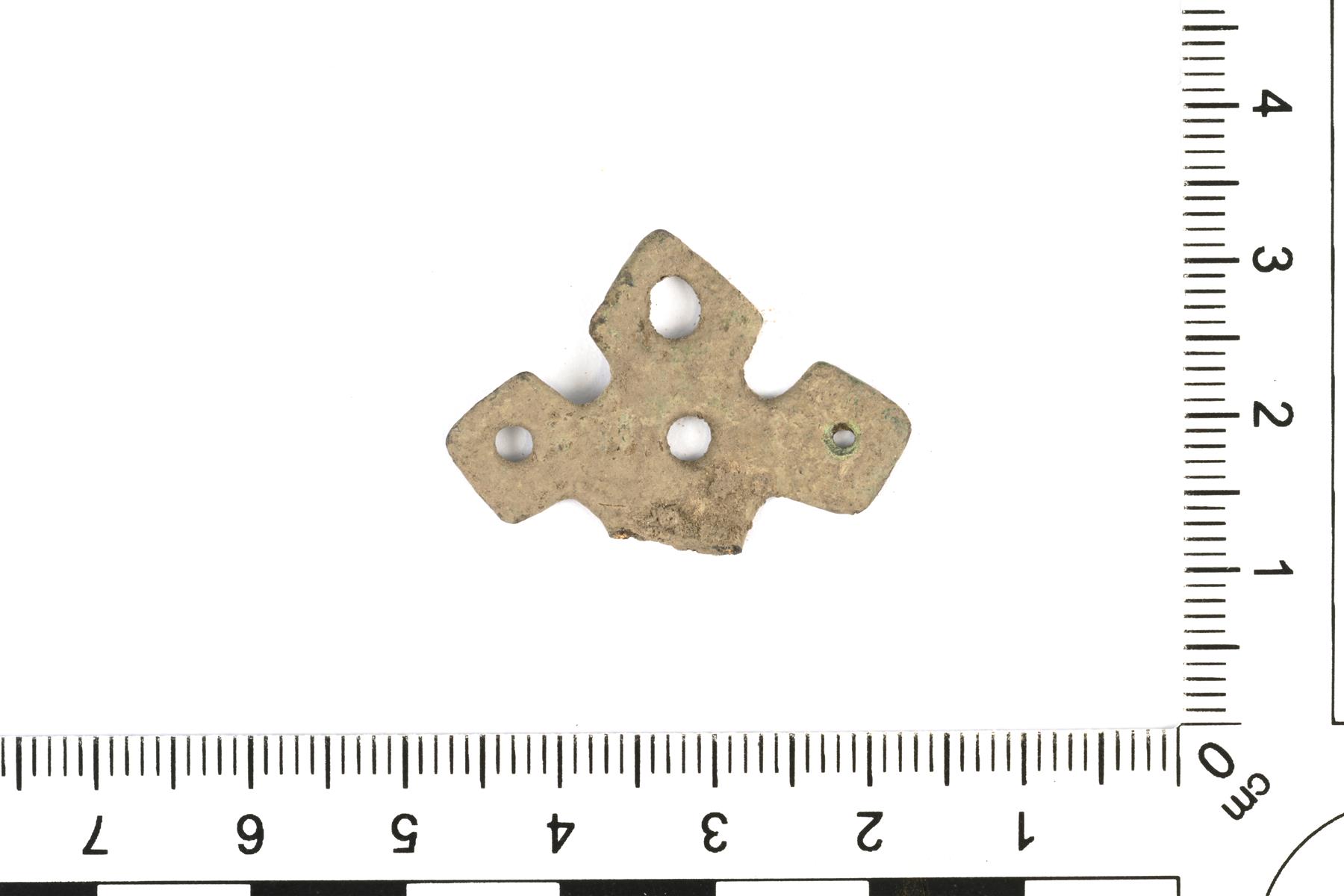 | Pyöreillä reikäkuvioilla koristellun ristiriipuksen katkelma. | |