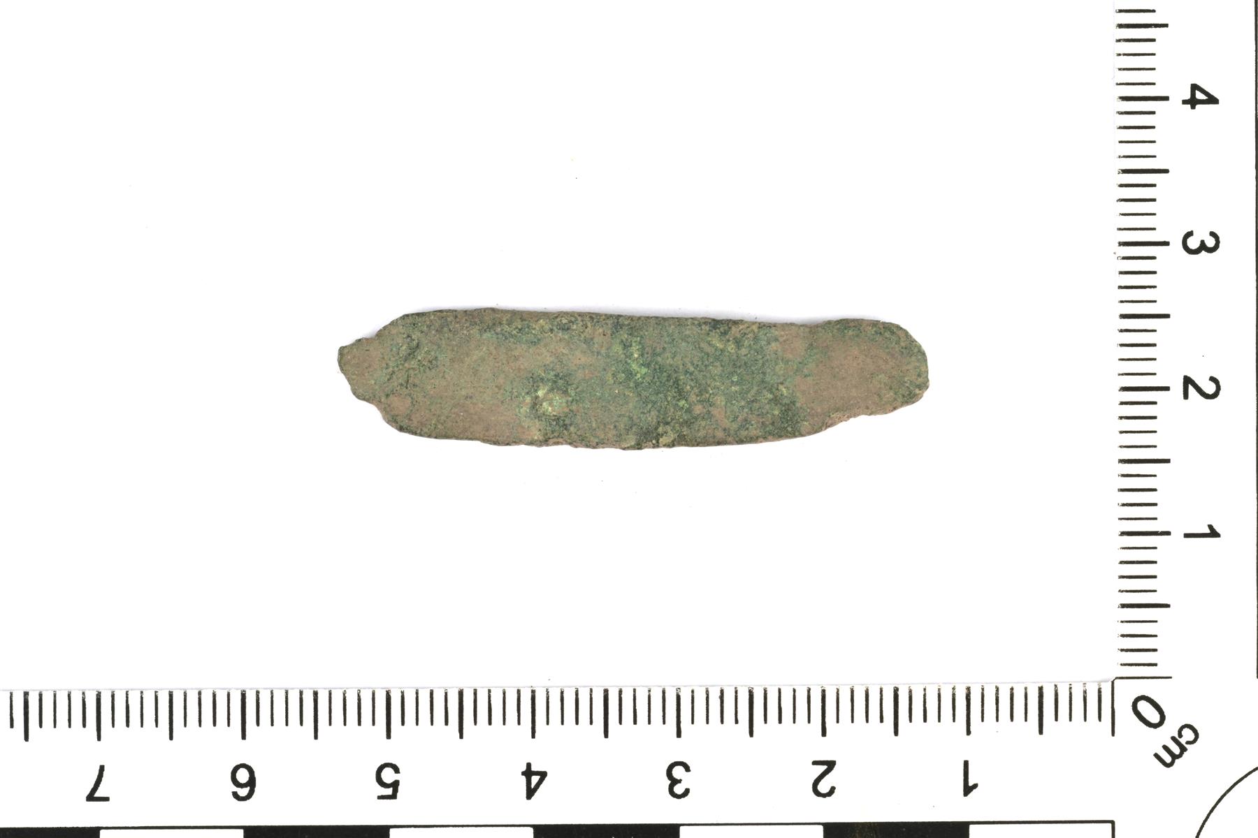 | Pitkänomaisen kupariseoslevyn katkelma. | |