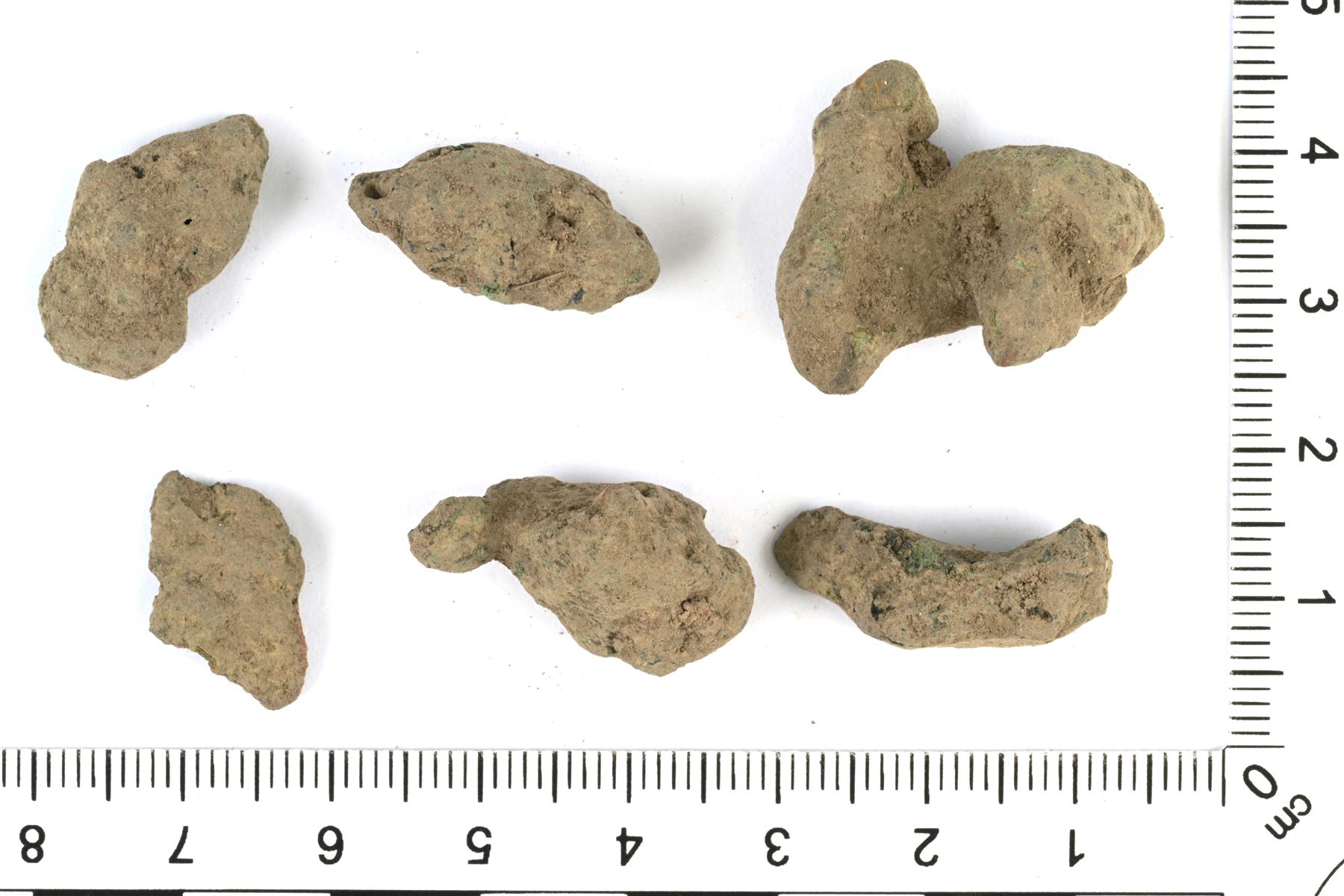 Sulaneen kupariseoksen paloja. Jussi Moisio 22.2.2024 KM46344:2_1_sulanut aines |