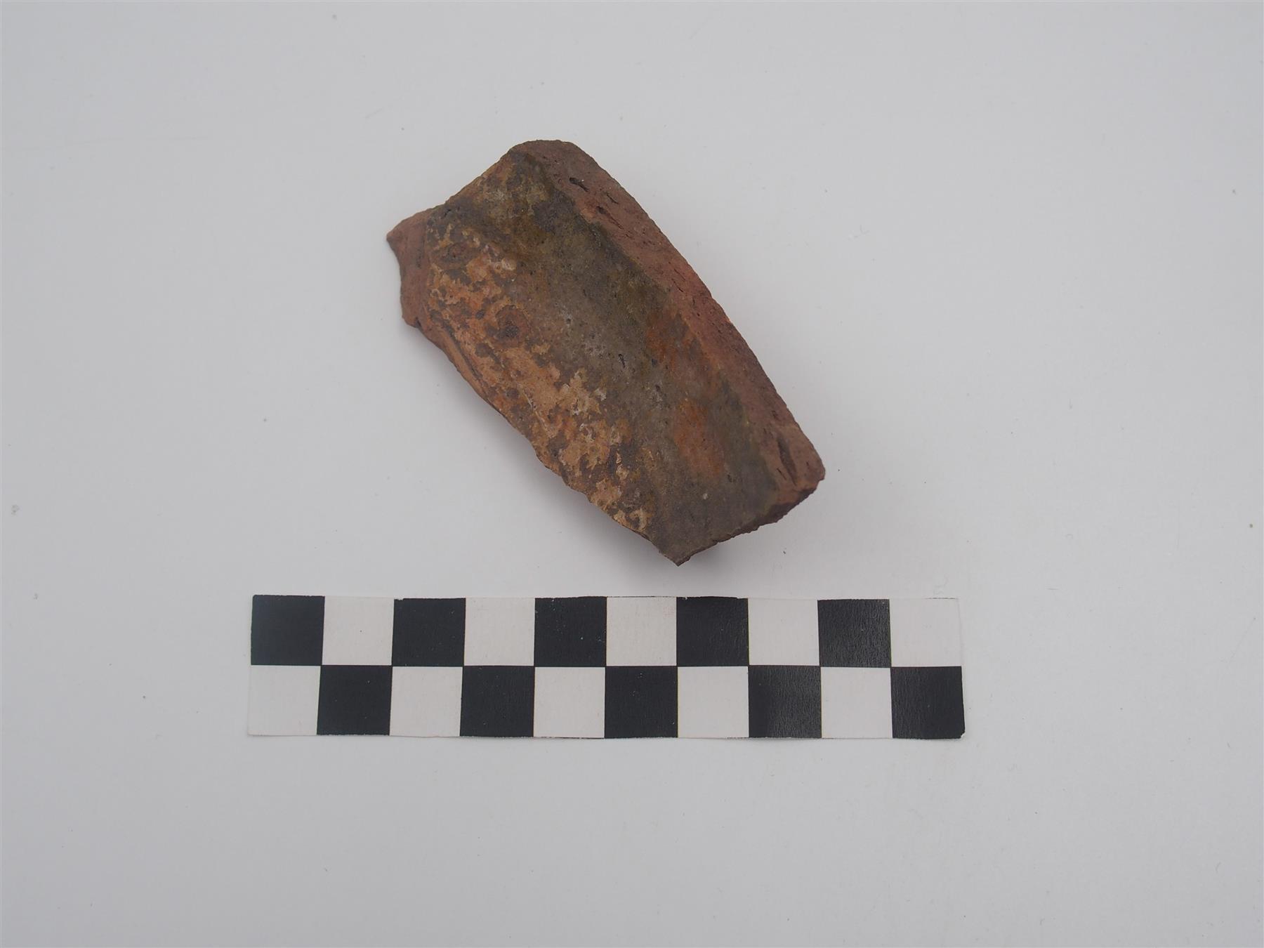 | Punasavikeraamisen astian pohjapala. Lasite sekä sisä- että ulkopinnoilla. | |