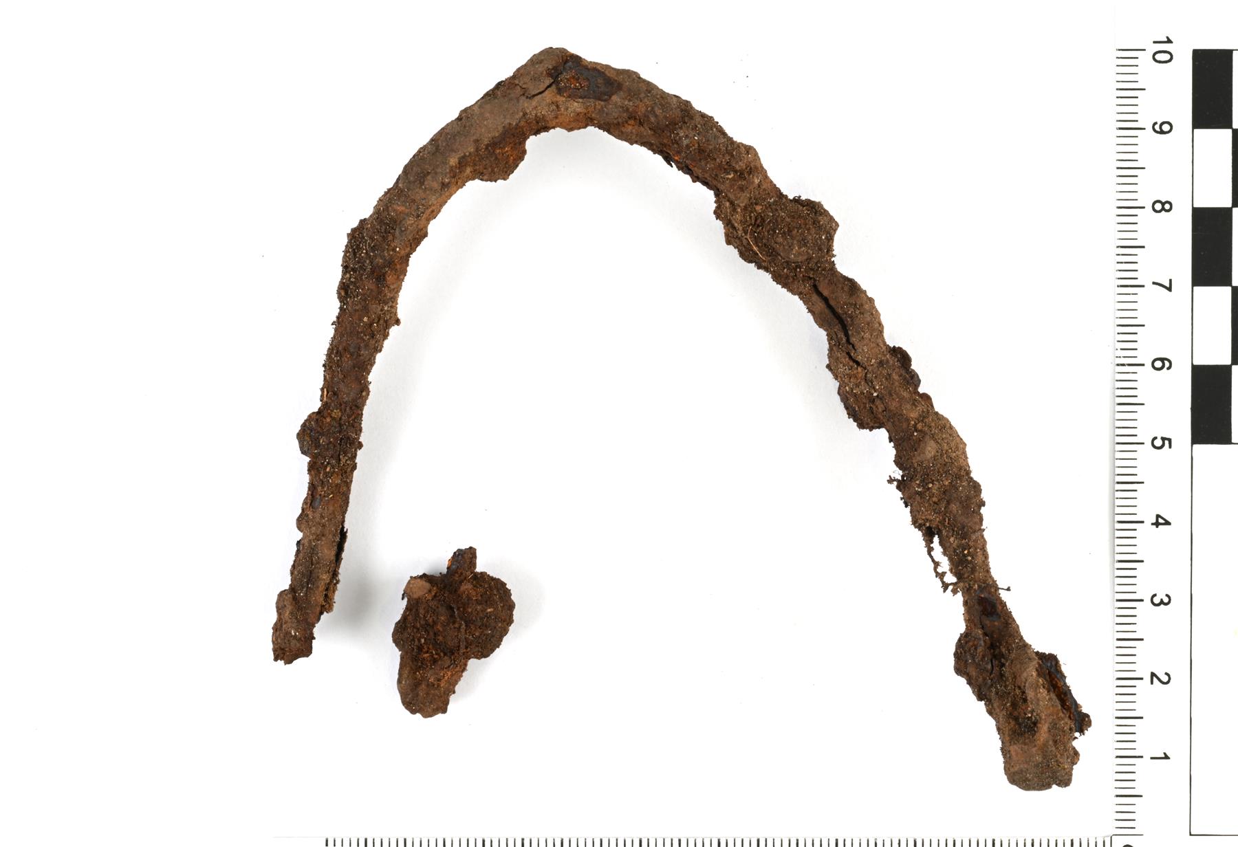 Rautainen rissakannus. Sivuraudat ovat kaarevat. Kaula on katkennut ja rissa puuttuu. Kiinnityspäät ovat melko huonokuntoiset ja toinen on irtonaisena kappaleena. | |