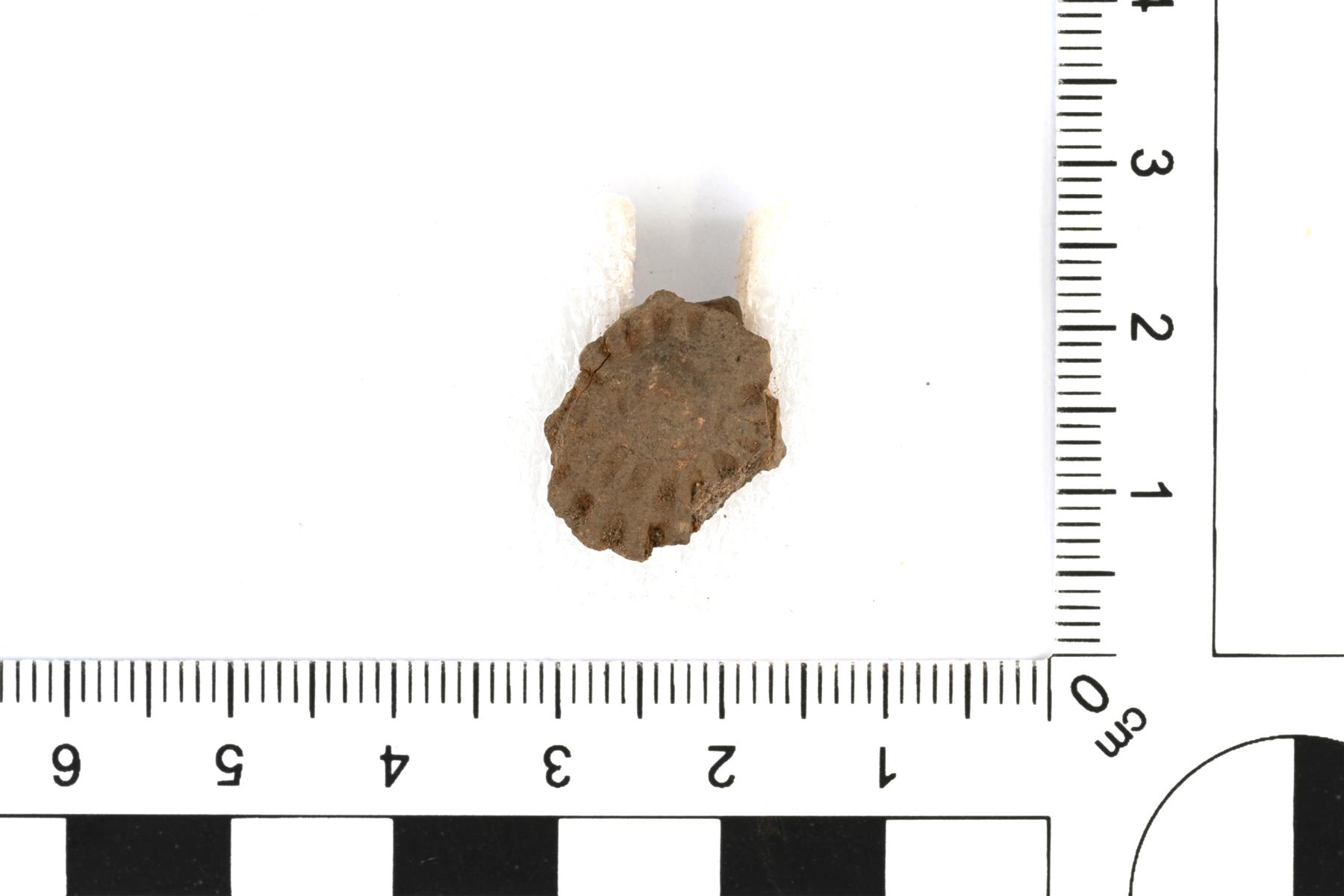 | Kukkakoristeinen hela. Taustapuolen kiinnitysniitti on vääntynyt. | |
