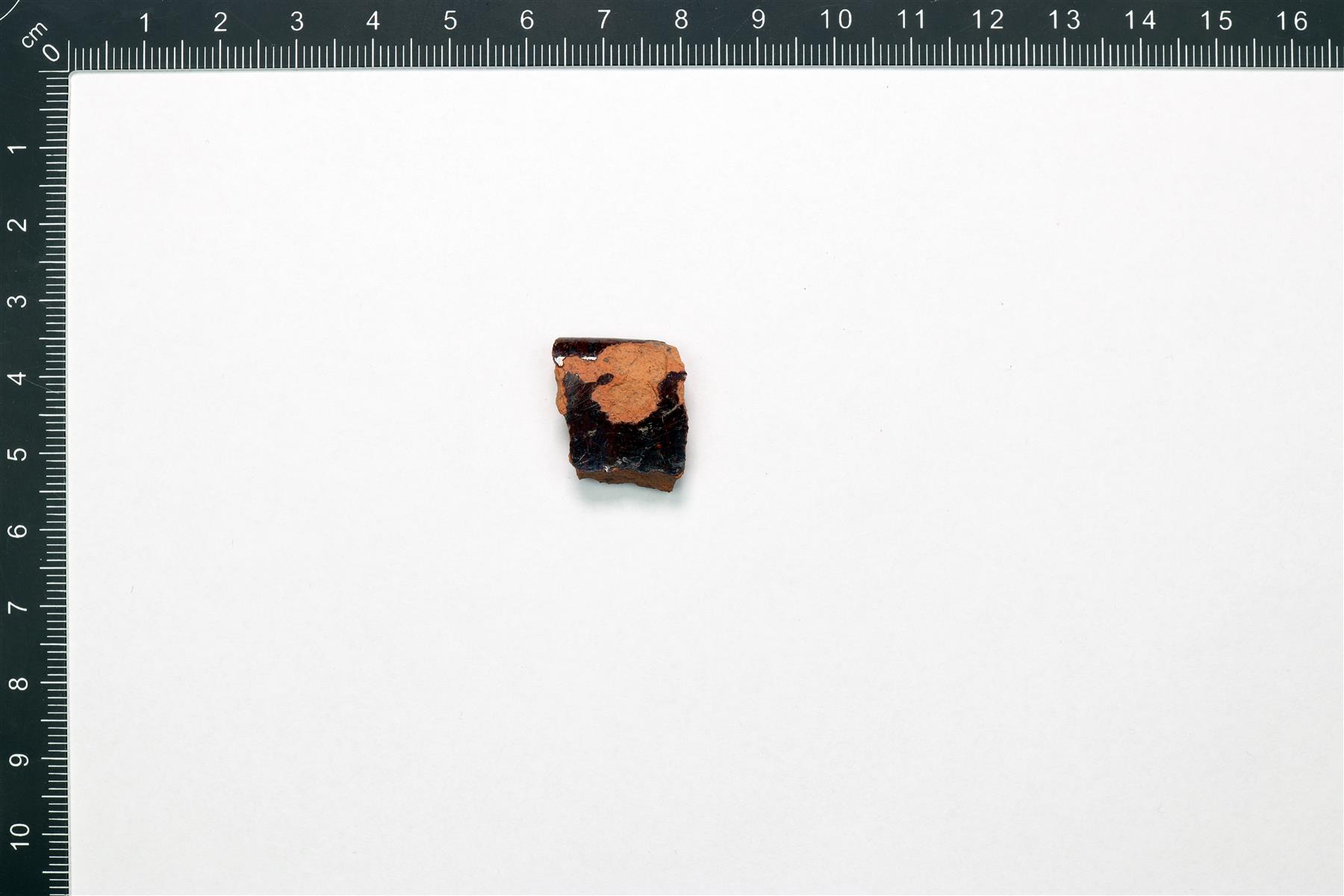 | Reunapala, jonka molemmilla pinnoilla on tummanruskea lyijylasite. | |