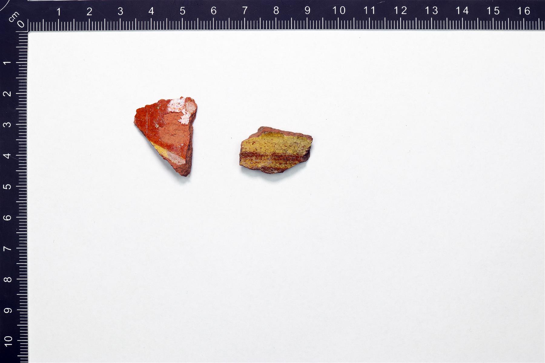 | Astian paloja, joissa on boluskoristelua ja ruskeasävyinen lyijylasite. | |