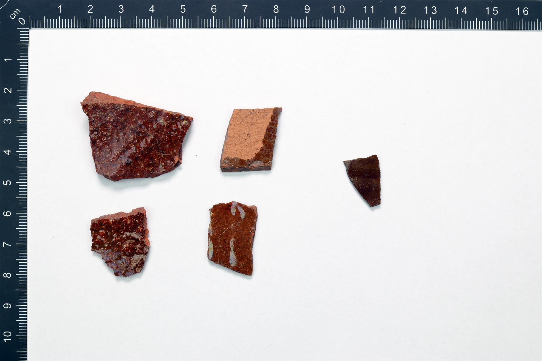 | Astian paloja, joiden pinnalla on ruskeasävyinen lyijylasite. | |