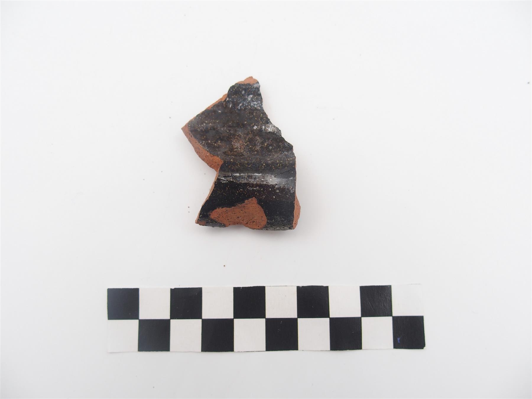 | Punasavikeraamisen astian reunapala. Ulkopinnalla musta lasite. | |