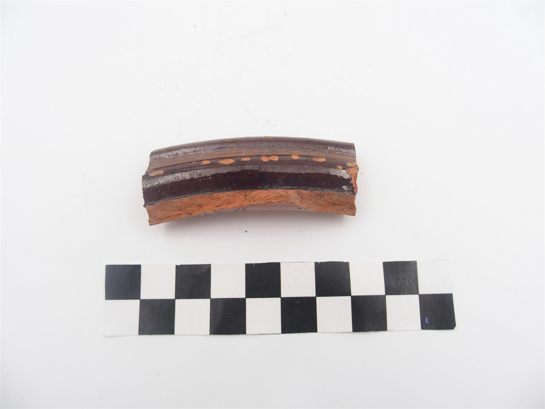 | Punsavikeraamisen astian reunapala. Astian pinnoilla ruskeaa lasitetta. | |