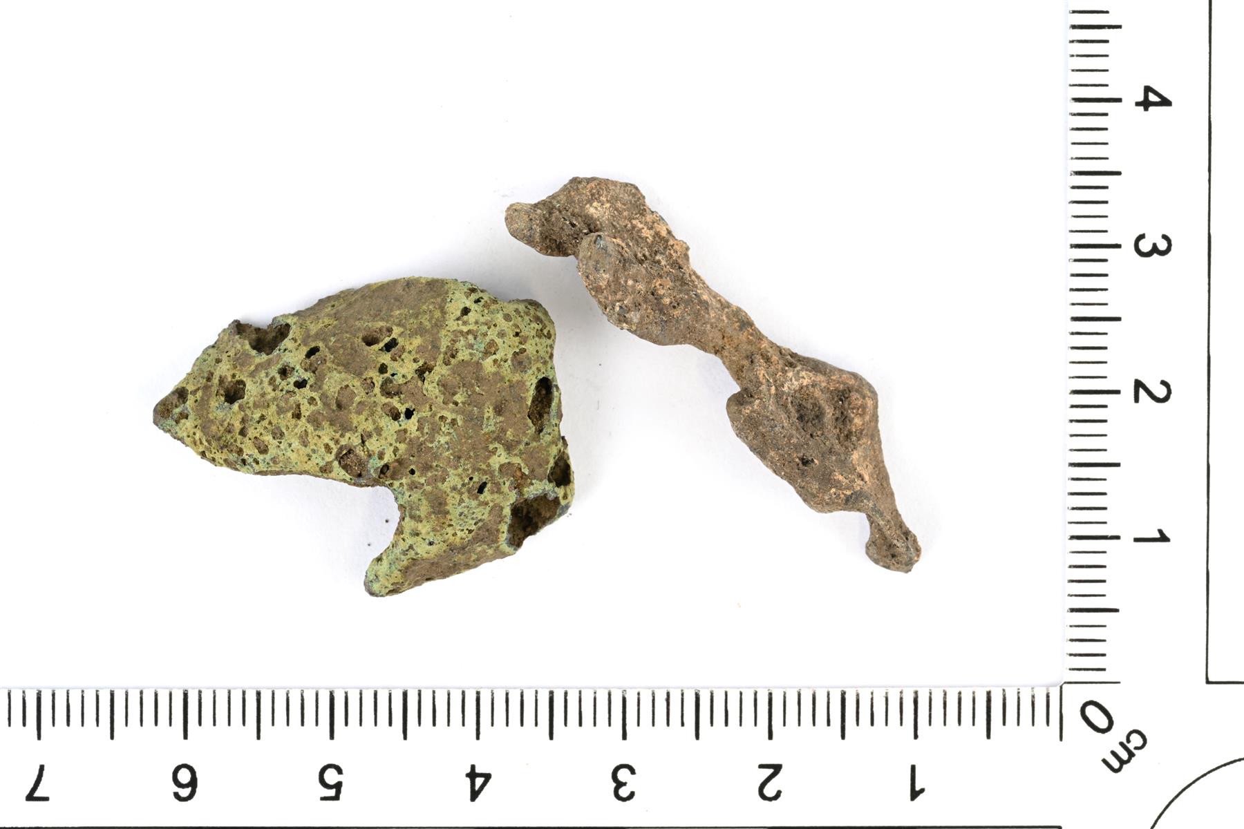 | Sulaneen kupariseoksen paloja. Jussi Moisio 18.3.2024 KM46501:2_1_sulanut aines |