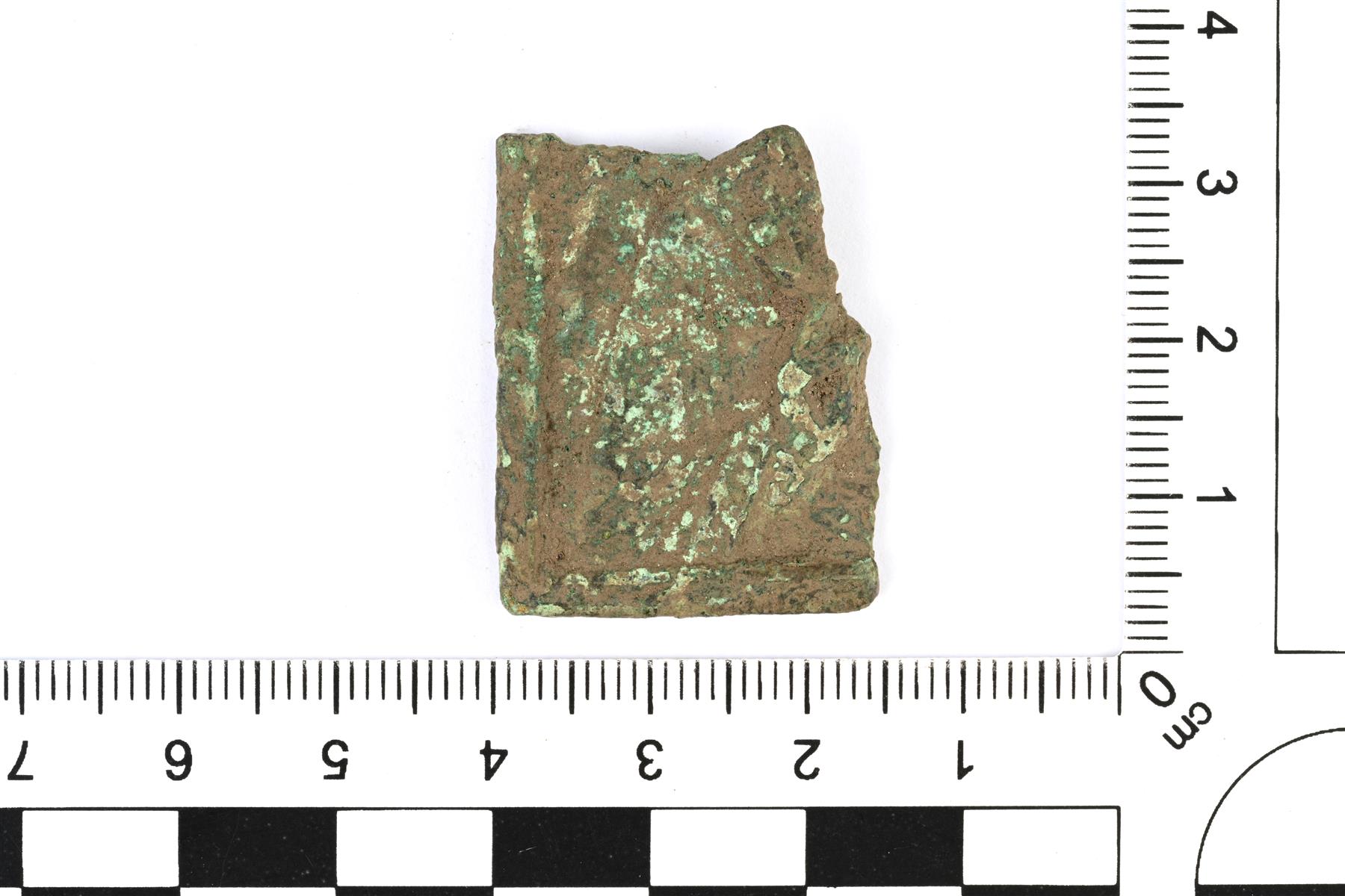 | Matkaikonin katkelma. Säilyneessä osassa on kohokuviolla kuvattu ihmishahmo. Melko huonokuntoinen. | |