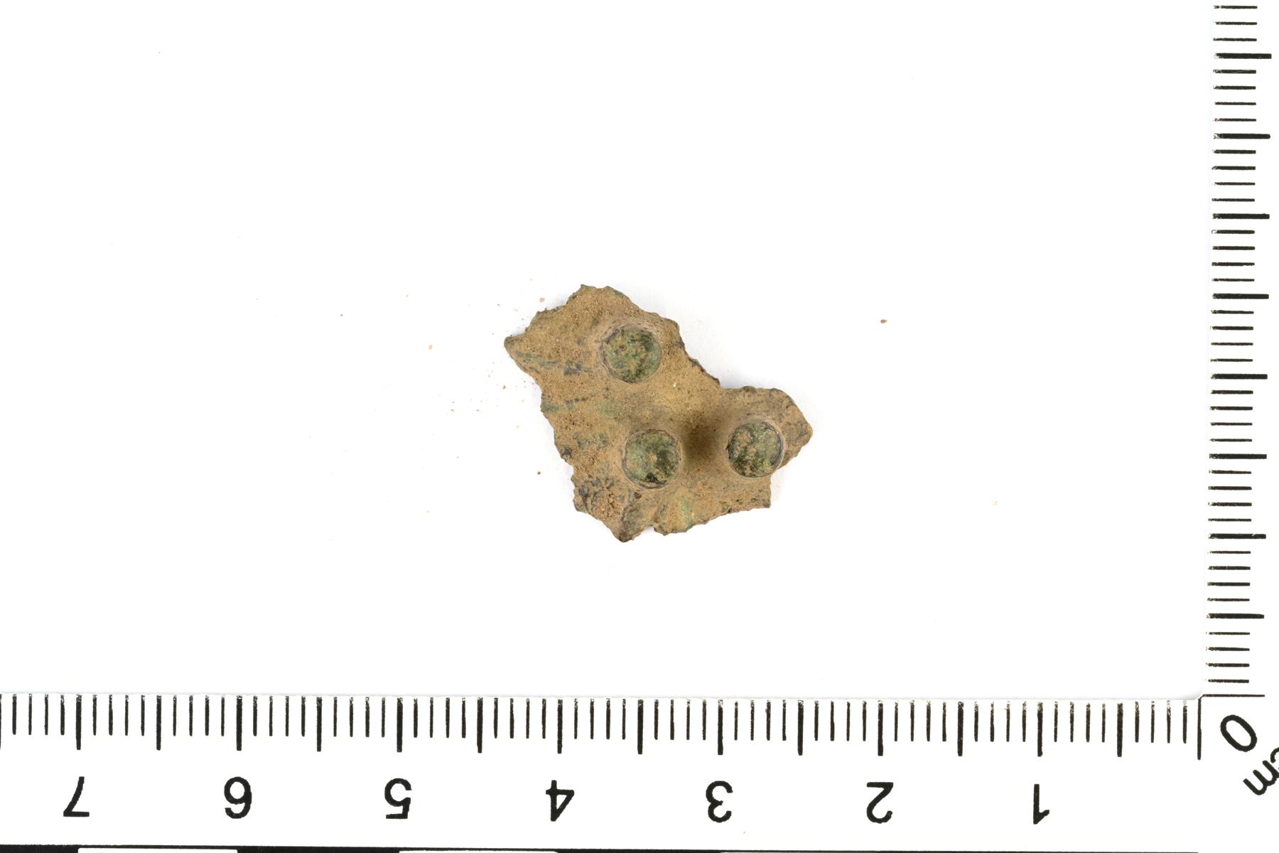 | Pyöreän kupurasoljen keskiosan katkelma. Säilyneenä kolme tappia. Mahdollisesti E- tai F-tyypin soljesta. | |