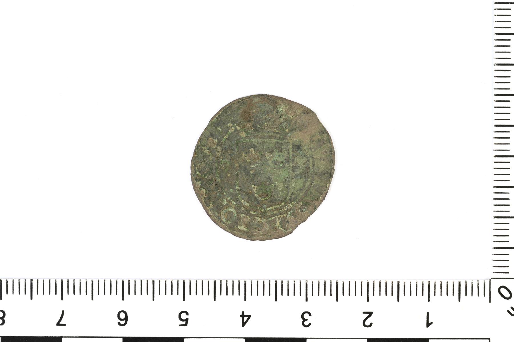 | Juhana III, 2 äyriä, Tukholma 1573 (SM 65b). | |