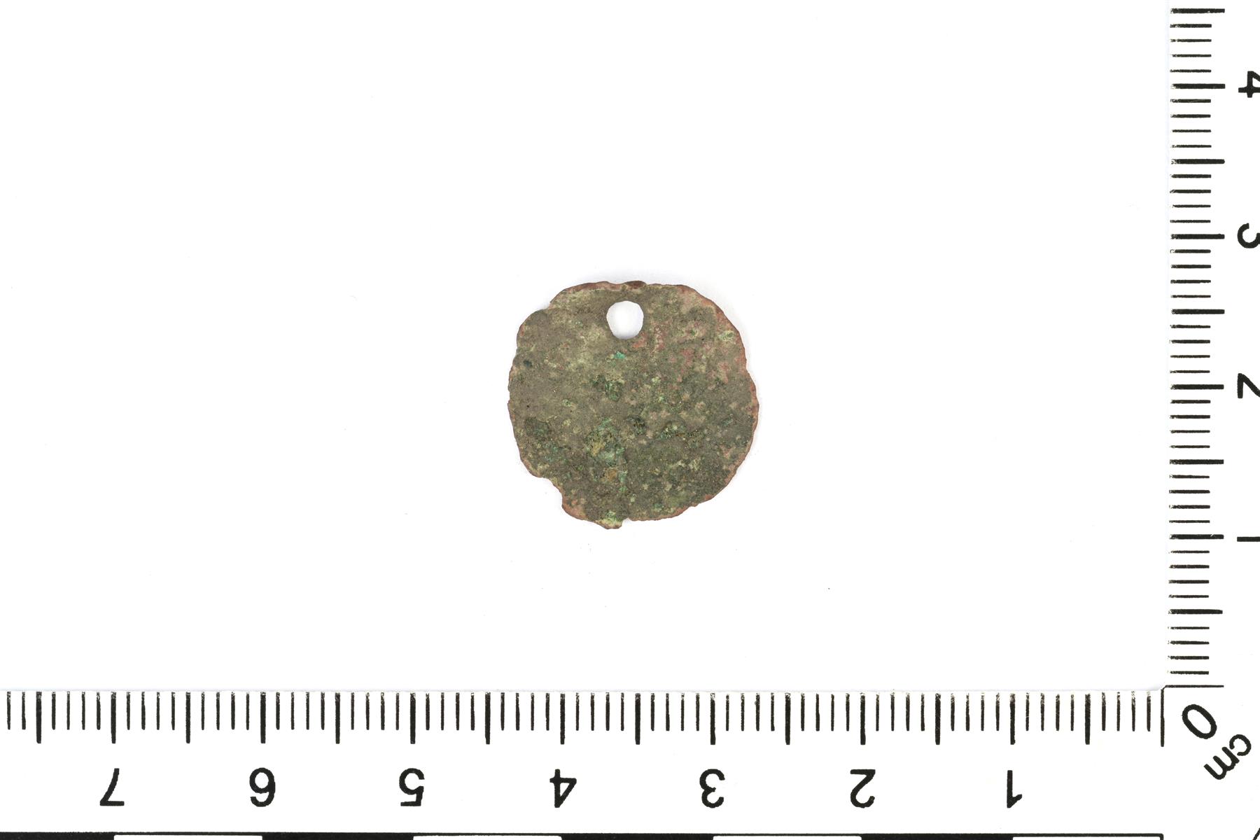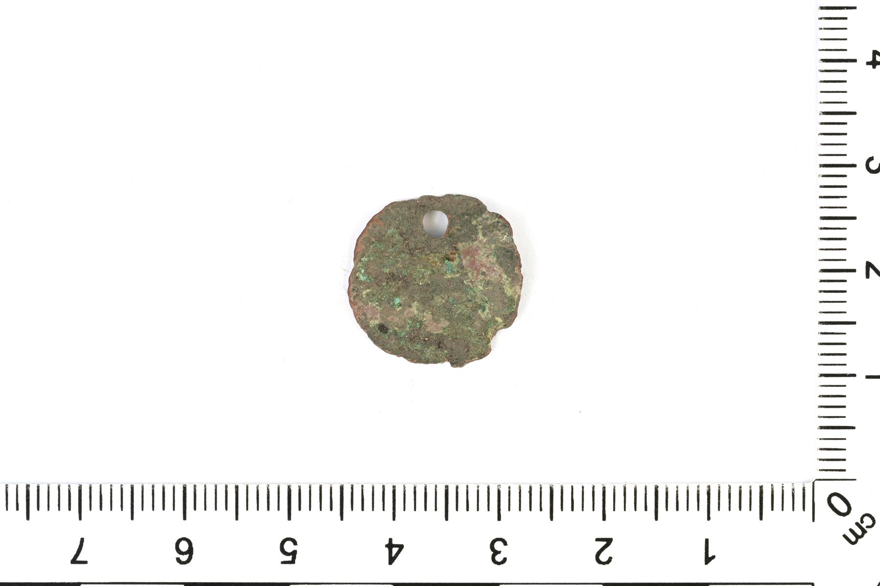 | Epäselvä raha, todennäköisesti Juhana III:n fyrk 1576–1692. Reunassa on reikä. | |