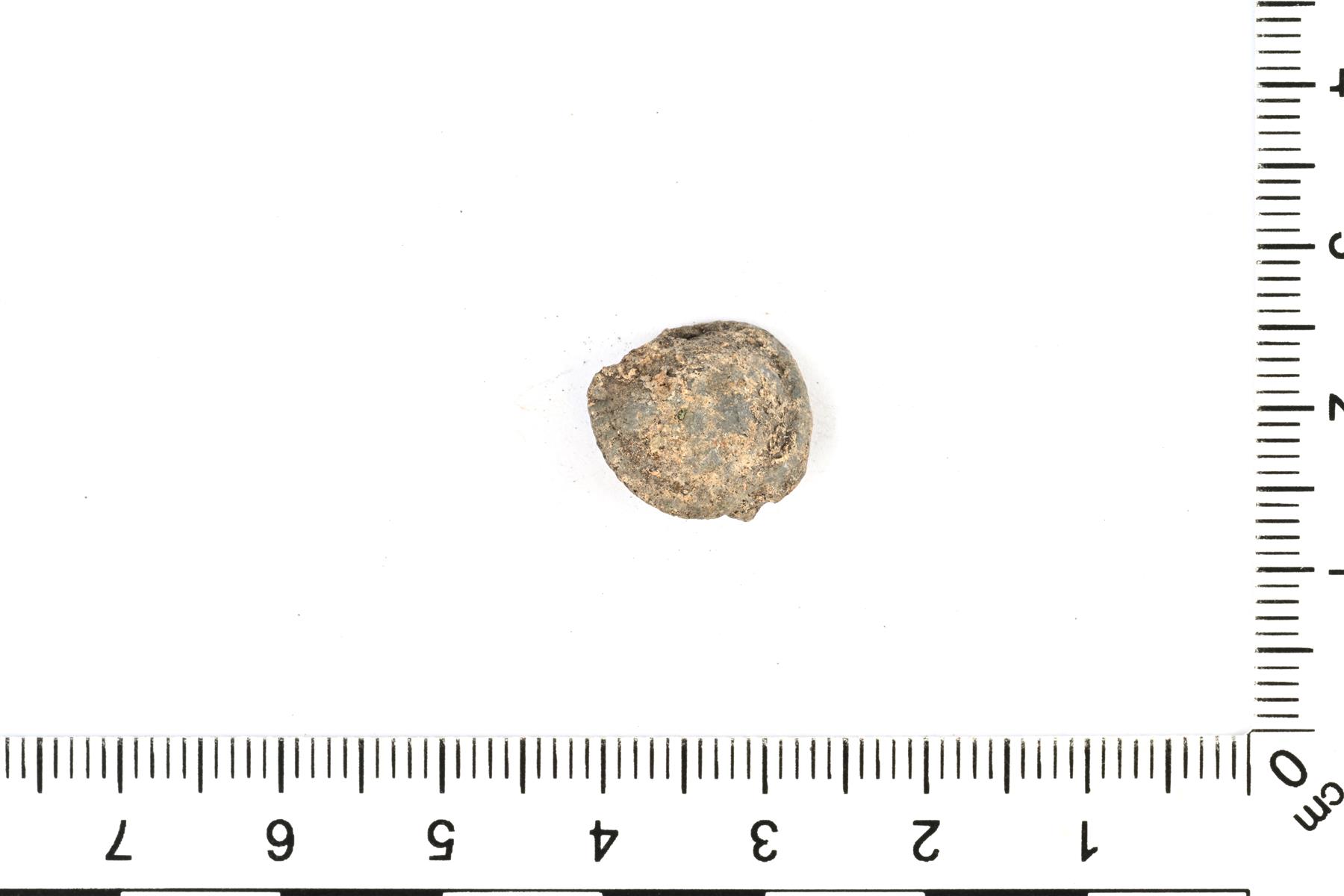| Pyöreän helan katkelma. Taustapuolella on kiinnitysniitin jäänne. | |