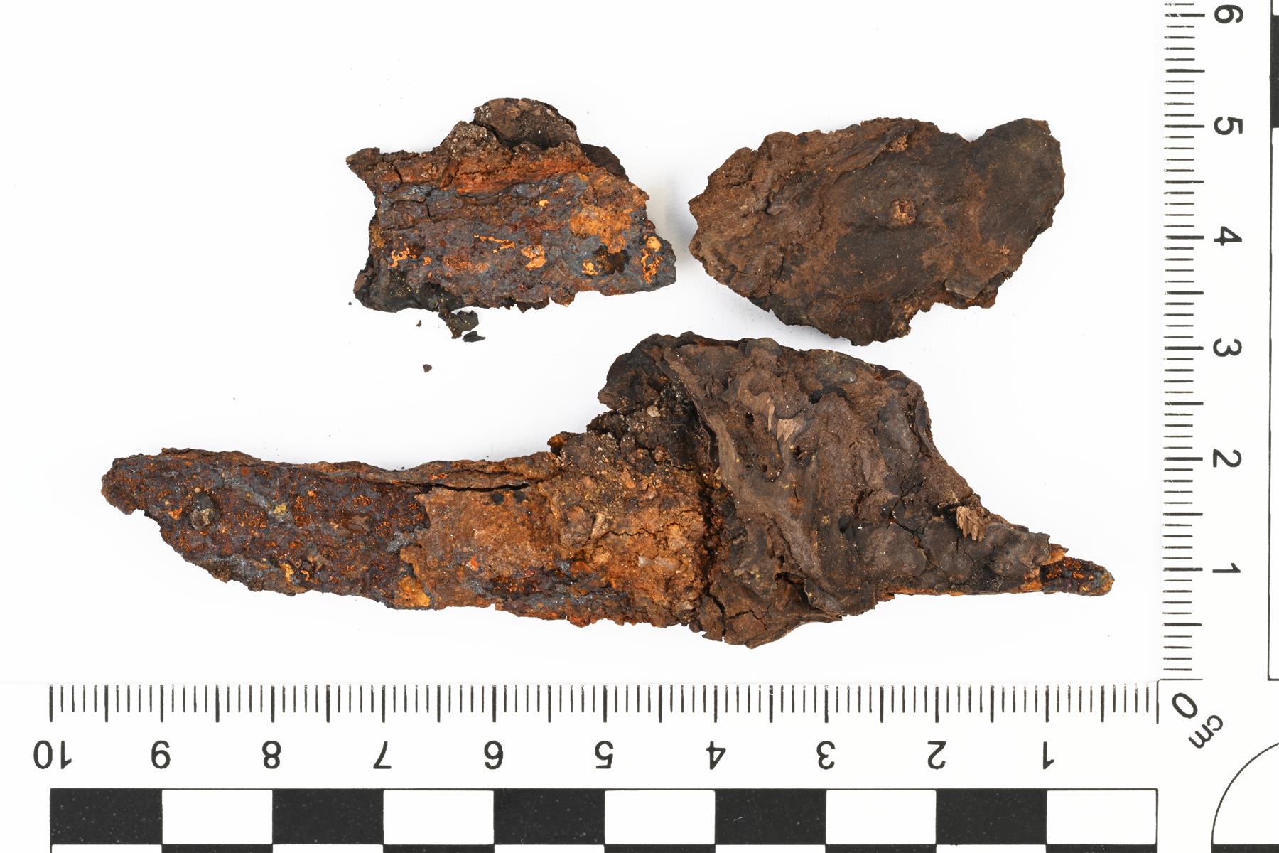 | Veitsi ja mahdollisen tupen jäänteitä. Jussi Moisio 2.4.2024 KM46558:1_1_puukko |