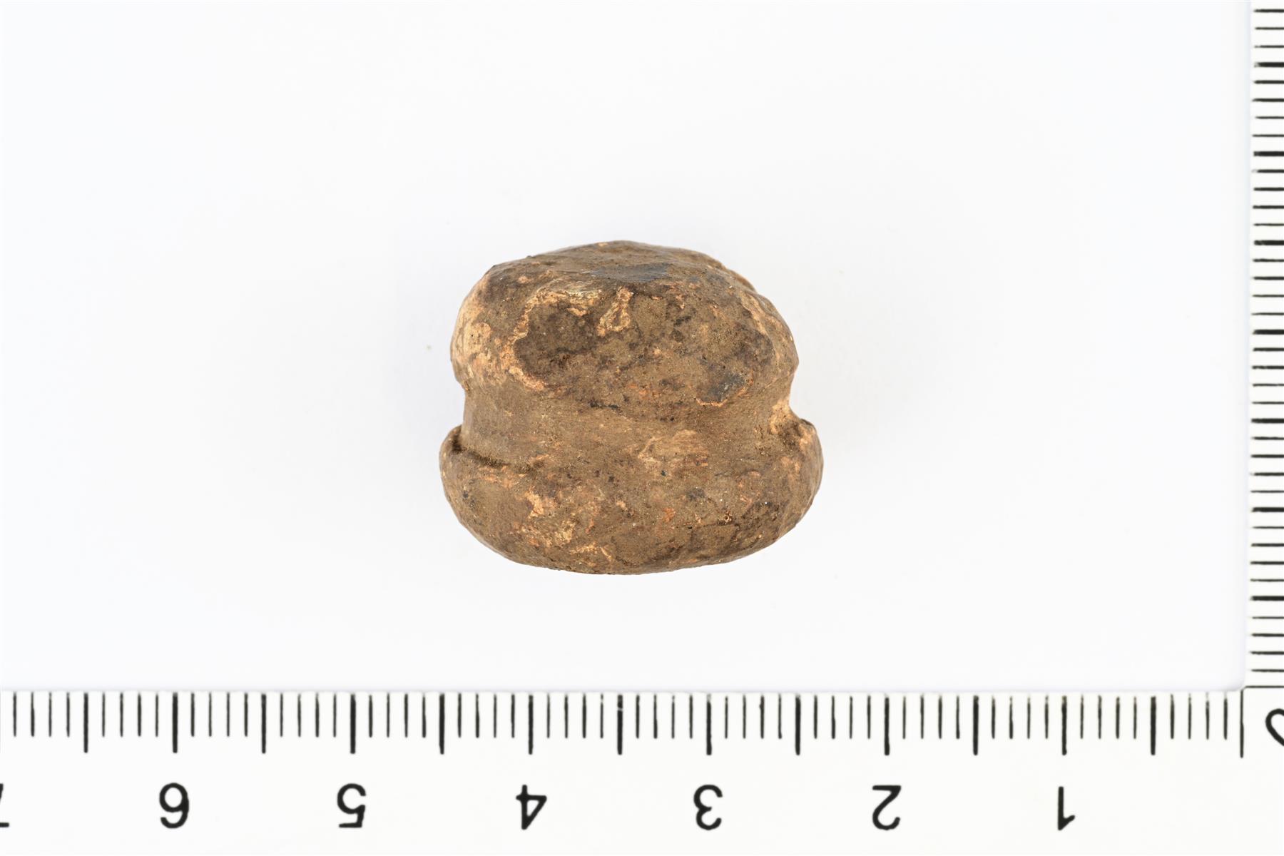 | Poikkileikkaukseltaan pyöreä lyijyesine. Keskellä on kapeampi vyöhyke. | |