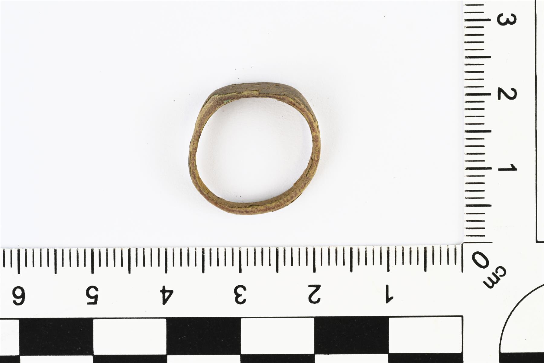 | Kokonaisena säilynyt talonpoikaissormus. Kannassa ja sen molemmilla puolilla on koristeena yksinkertaista viivakuviointia. | |