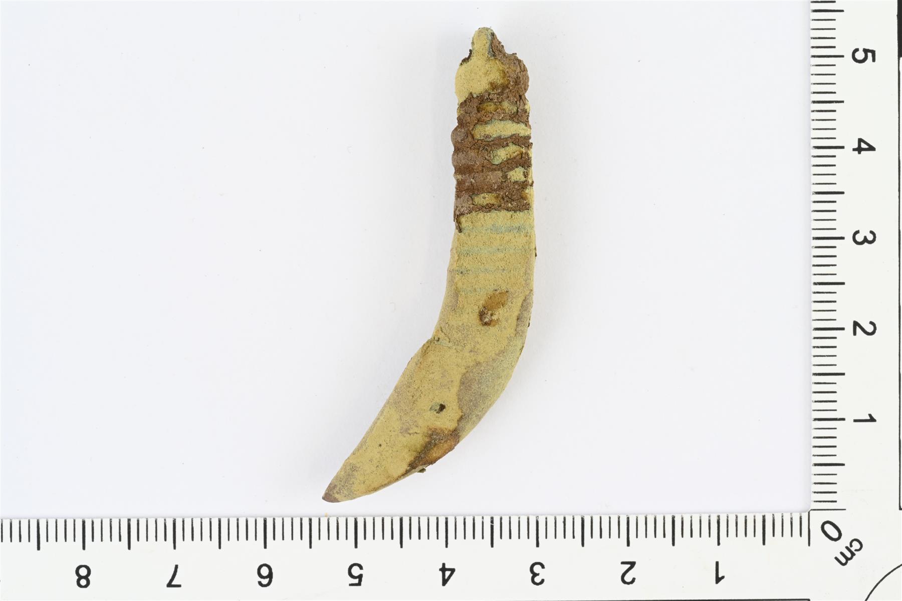 | Karhunhammasriipus. Yläpään ripustuslenkki murtunut. | |