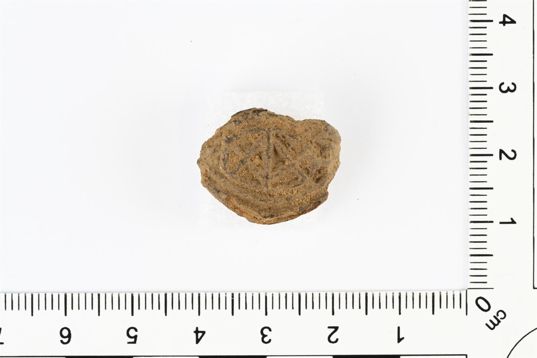 Talonpoikaisen sormuksen kantakatkelma. Koristeltu geometrisella ornamentiikalla. | |