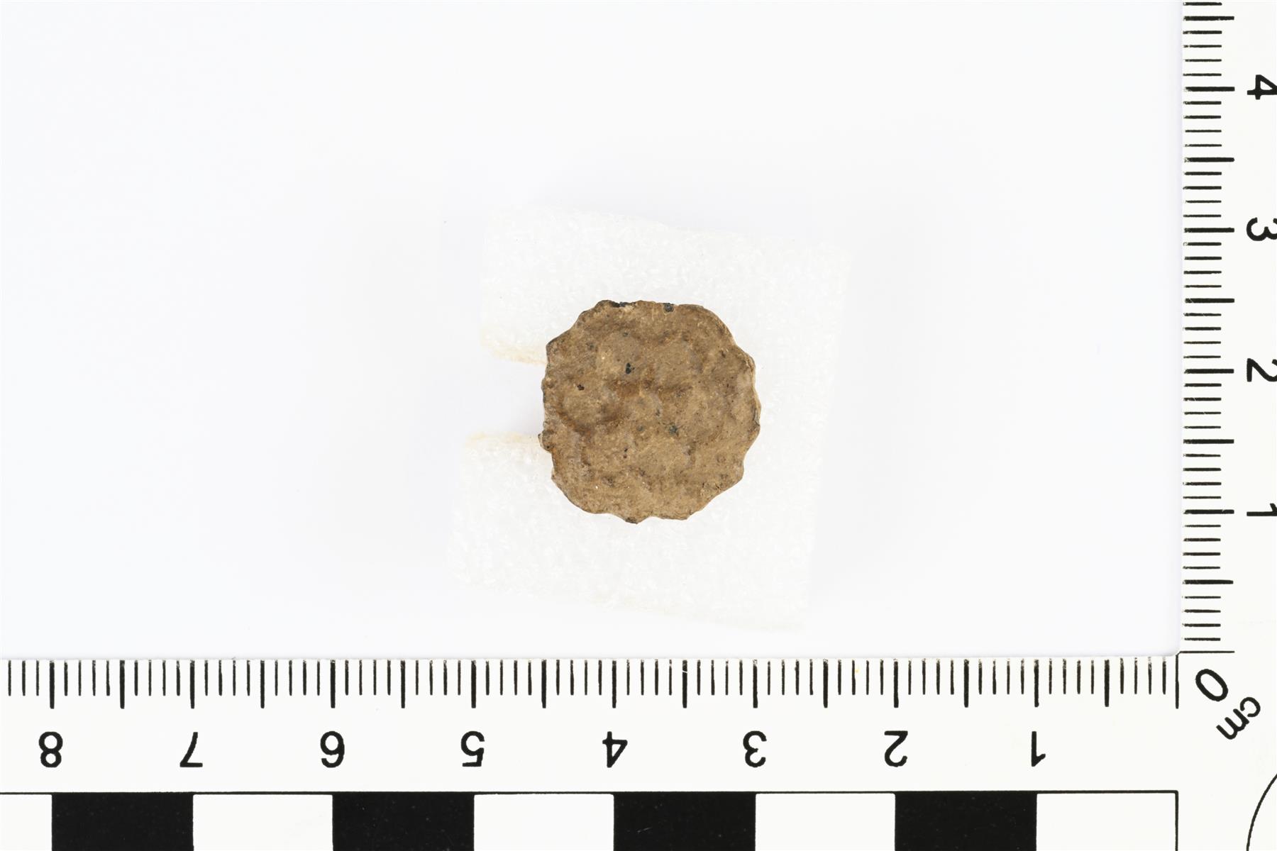 | Talonpoikainen kiekkonappi. Koristeltu yksinkertaisella kukkakuviolla. | |
