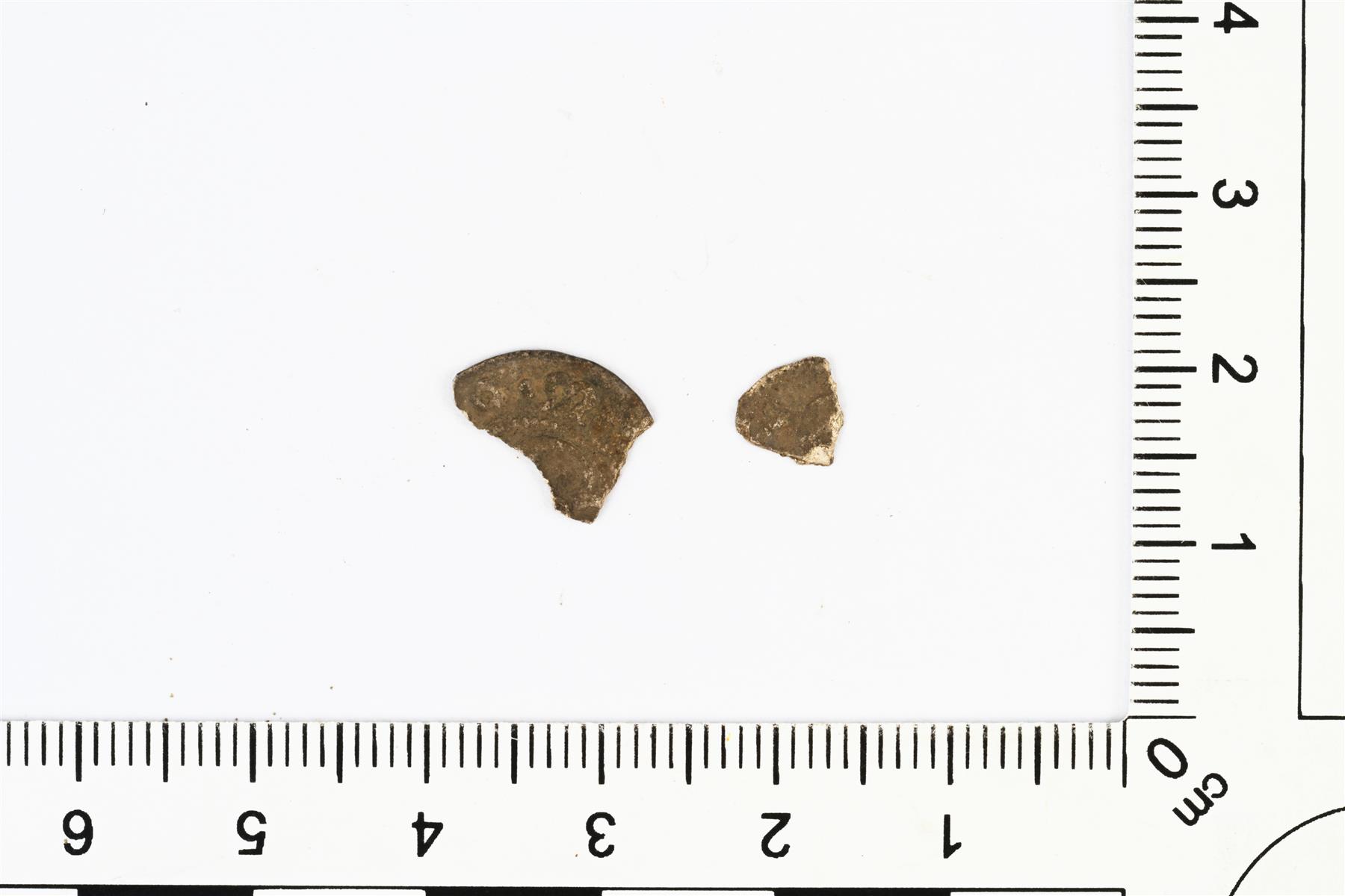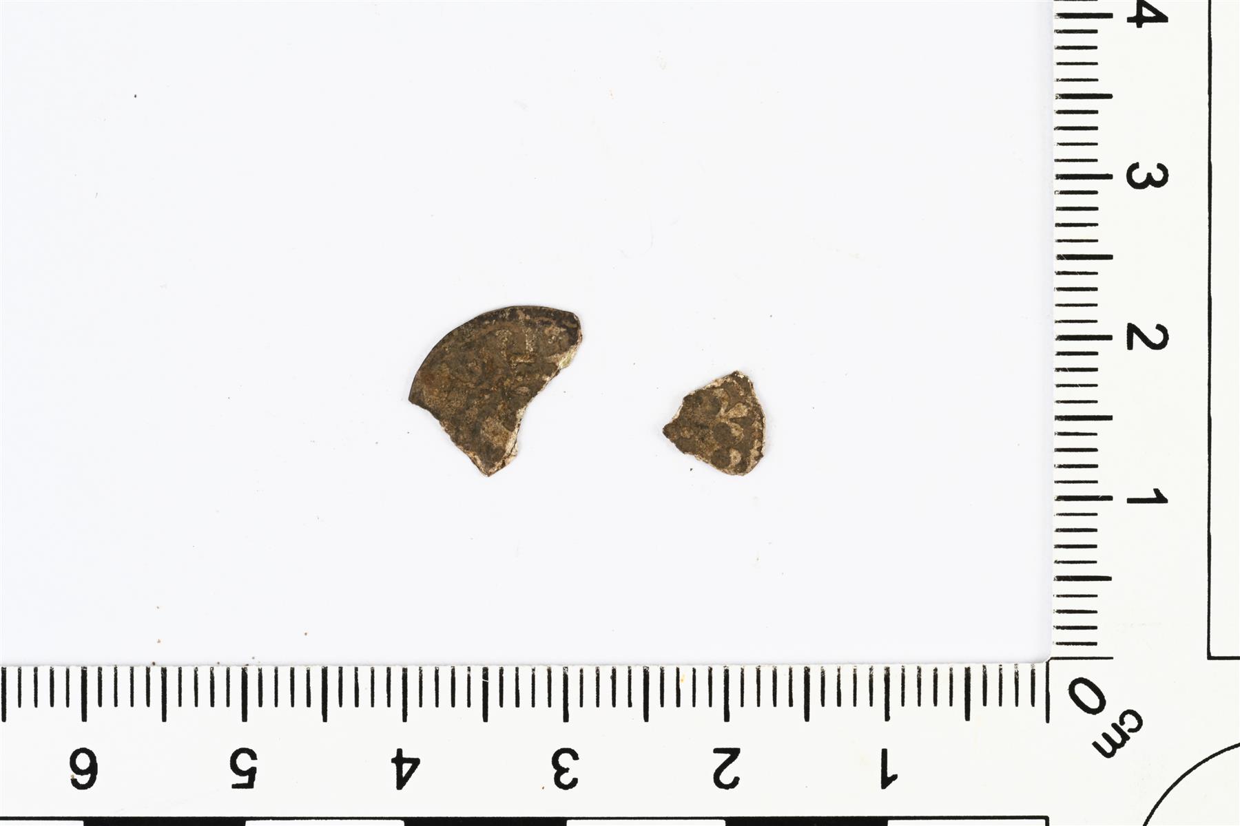 | Kaksi katkelmaa kolikosta. Kuusinainen, Kustaa Vaasa, 1520-luku, Tukholma. | |