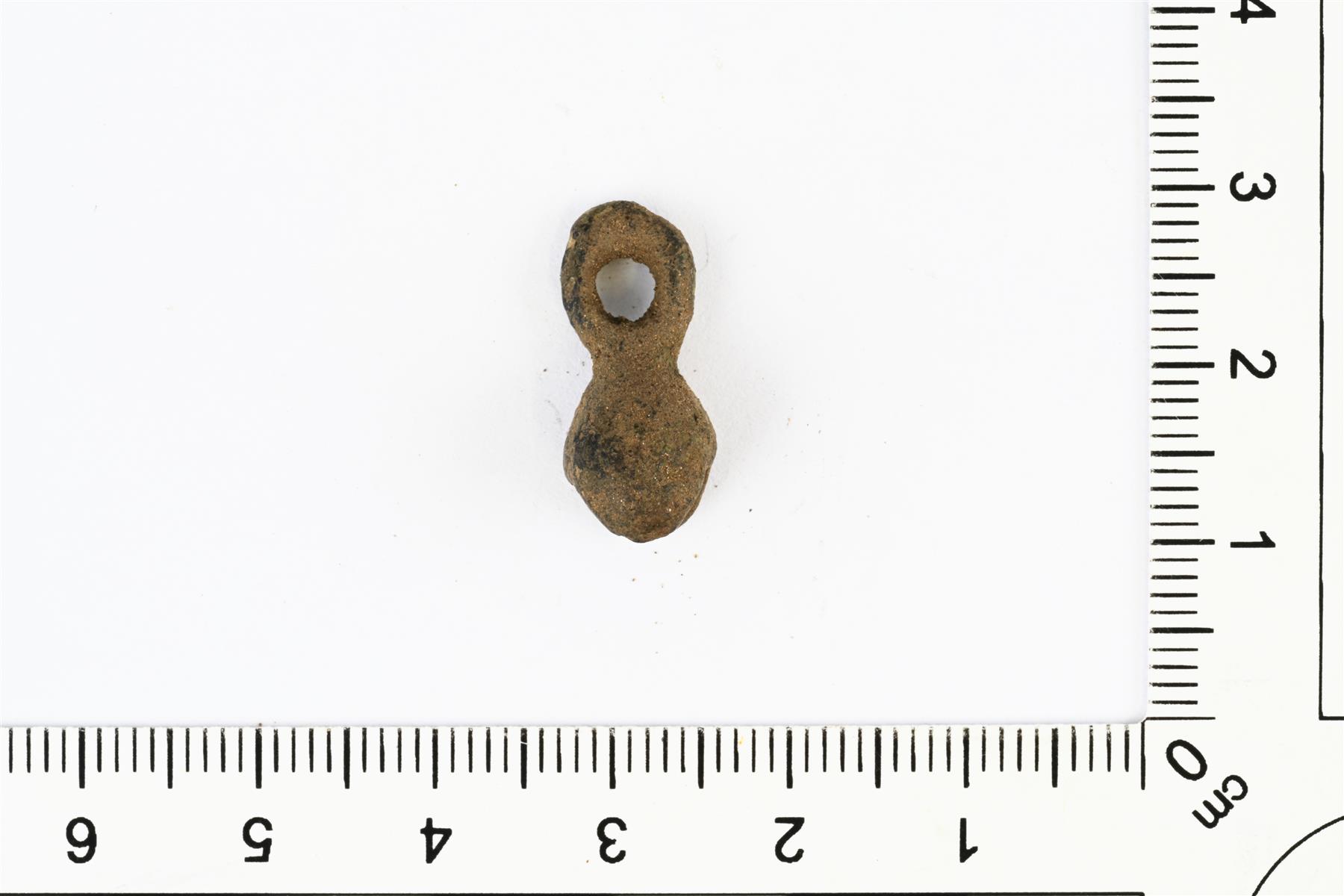 | Pallomainen kulkusriipus. Kaksi lehdykkää, jotka ovat hajonneet alaosasta. Koristeeton | |