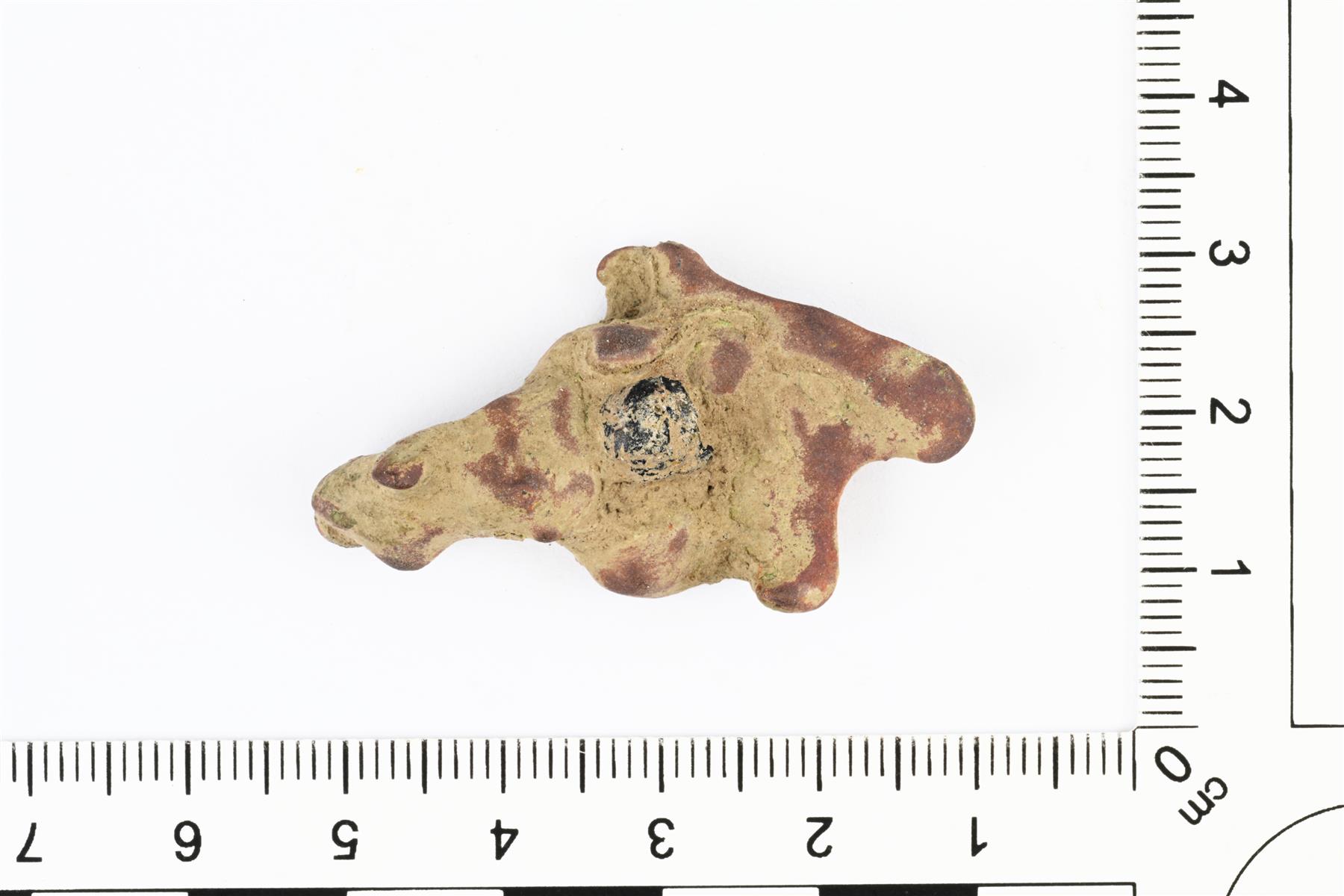 | Sulaneen kupariseoksen ja lasin pala. Jussi Moisio 25.4.2024 KM46675:2_1_sulanut aines |