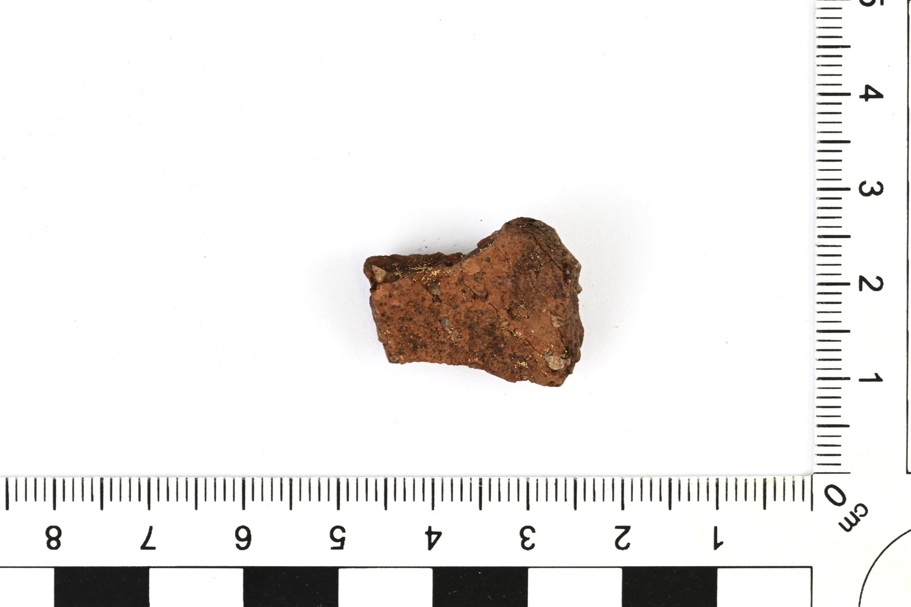 | Karkeasekoitteisen keraamisen astian sisäpinnan pala. Sekoitteena maasälpää. | |