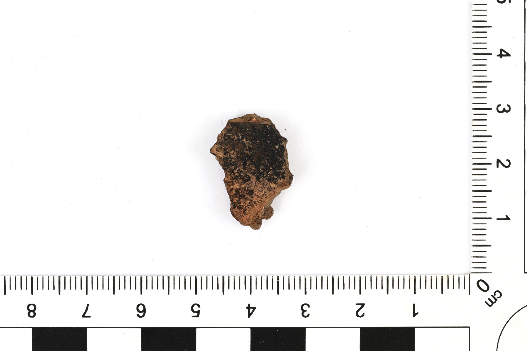 | Karkeasekoitteisen saviastian sisäpinnan pala. Pinta on hieman tummunut. Sekoitteena maasälpää. | |