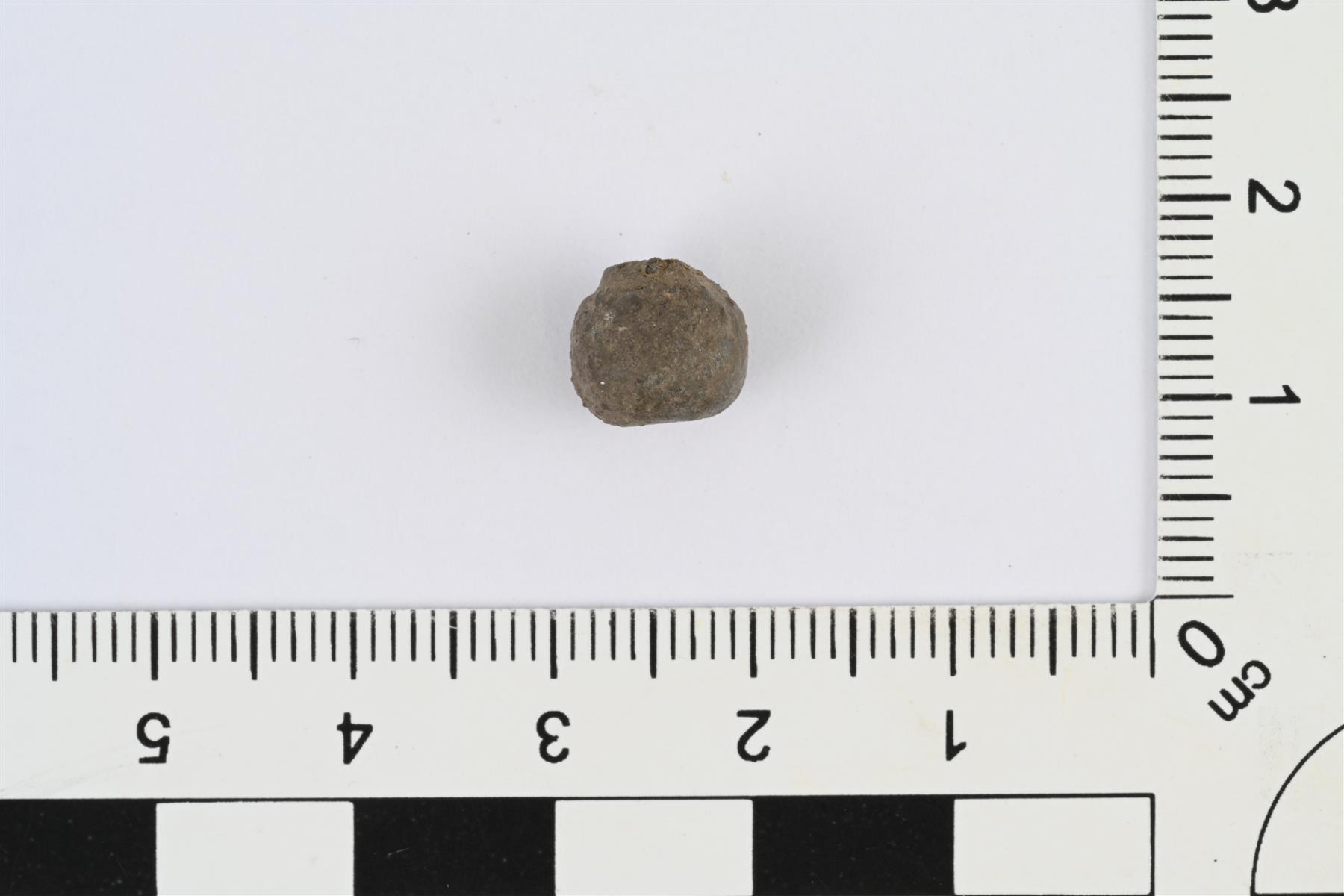 | Pyöreä pallomainen helmi, luultavasti lyijyseosta. | |